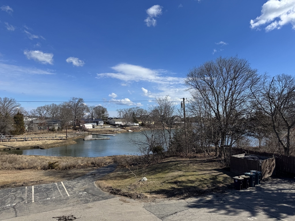 Saltwater Creek condo, 2 bedroom,1 bath, living room has slider to deck off of living room with beautiful waterviews, 1 deeded parking space and vistor parking, top level, 760 sq ft., laundry in building . Convenient North Weymouth location close to Wessaguset beach,, Lane beach, boat ramp, Webb park and Hingham shipyard , shopping and resturants close by. Very convenient commute to Boston, Rt 3 A , On bus line, close drive to Hingham commuter Boat , Great alternative to paying rent, condo fees include hot water, sewer, landscaping, snow and trash removal,