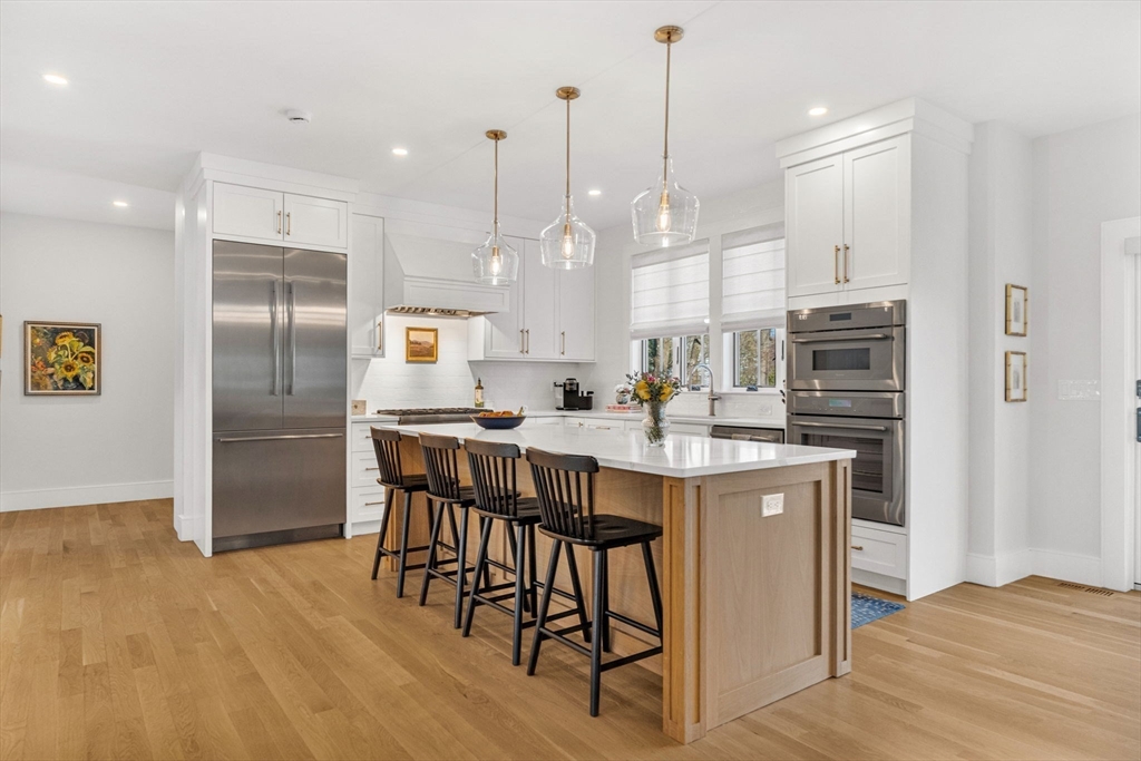 Exquisite 2024 built 5BR home in highly convenient location just steps to Hardy Elementary, scenic Morse’s Pond & short stroll to Wellesley Center w/ shops, restaurants & commuter rail. Sun-drenched w/ soaring ceilings & meticulously crafted living spaces, the open 1st floor plan is ideal for both everyday living & entertaining. Chef’s kitchen w/ huge island & high-end appliances flows seamlessly to spacious living & dining areas—perfect for gathering w/ family & friends. A thoughtfully designed mudroom off the 2-car garage adds effortless convenience. Four floors of living provides space & flexibility for today’s lifestyle. The 2nd floor features a luxurious primary suite w/ spa-like bath plus 2 additional spacious bedrooms & bath. 3rd floor offers a private bedroom suite ideal for guests, office, or au pair. Versatile lower level includes a bedroom suite, 2nd full bath w/ great space for play, exercise, or movie nights. Sited on adjacent side street in vibrant neighborhood setting!