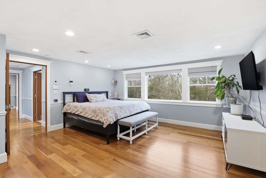 Welcome to this stunning Colonial ideally situated at the end of a cul-de-sac in the highly desirable Highland's area of Braintree. Featuring 5 bedrooms, 2.5 bathrooms, including a luxurious 3rd floor master suite complete with custom closets, separate shower, jacuzzi tub & wall mounted toilet & the option for a nursey or office. This home is designed for both everyday living & relaxation. The thoughtfully designed kitchen with dual oven offering 6 burners plus griddle for gas cooking & electric for baking, plus a pot filler, wolf drawer microwave & beverage frig are perfect for entertaining. A standout feature is the expansive bonus room above the two-car garage, complete with a cozy fireplace-ideal for gatherings & or media room. Step outside to your own backyard oasis set on approximately one acre, offering exceptional privacy. Enjoy summer days by the inground pool, unwind in the hot tub, or relax on the composite deck. An outdoor shower adds to this impressive outdoor space.