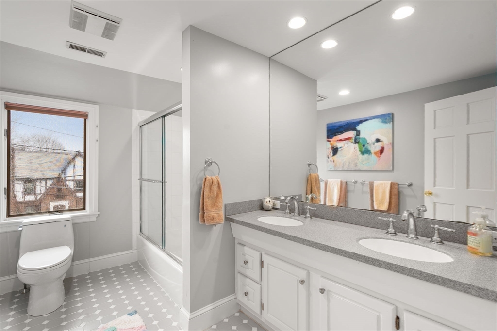Classic Tudor showcasing striking architectural details & timeless charm in one of Newton’s most desirable neighborhoods. Enter to a dramatic staircase beneath a hand-painted domed ceiling with a statement chandelier. Continue into a gracious living room with a barrel-vaulted ceiling, hardwood floors, distinctive windows, arched openings, and an ornate fireplace, an impressive space well suited for entertaining. The living room flows into a library with well-designed built-ins & fireplace, a perfect spot for reading while overlooking the yard. The elegant dining room connects to the spacious kitchen & large family room ideal for everyday living. Excellent flow throughout the main level. The 2nd floor offers 5 bedrooms, including a spacious primary suite with walk-in closet, en-suite bath, an office, plus 2 additional full baths. Finished lower level with a versatile living space, full bath, and access to an oversized 4 car garage. Tucked away on a quiet, well-located cul-de-sac.