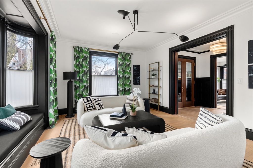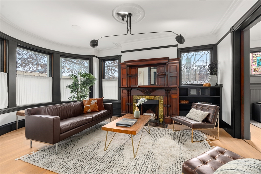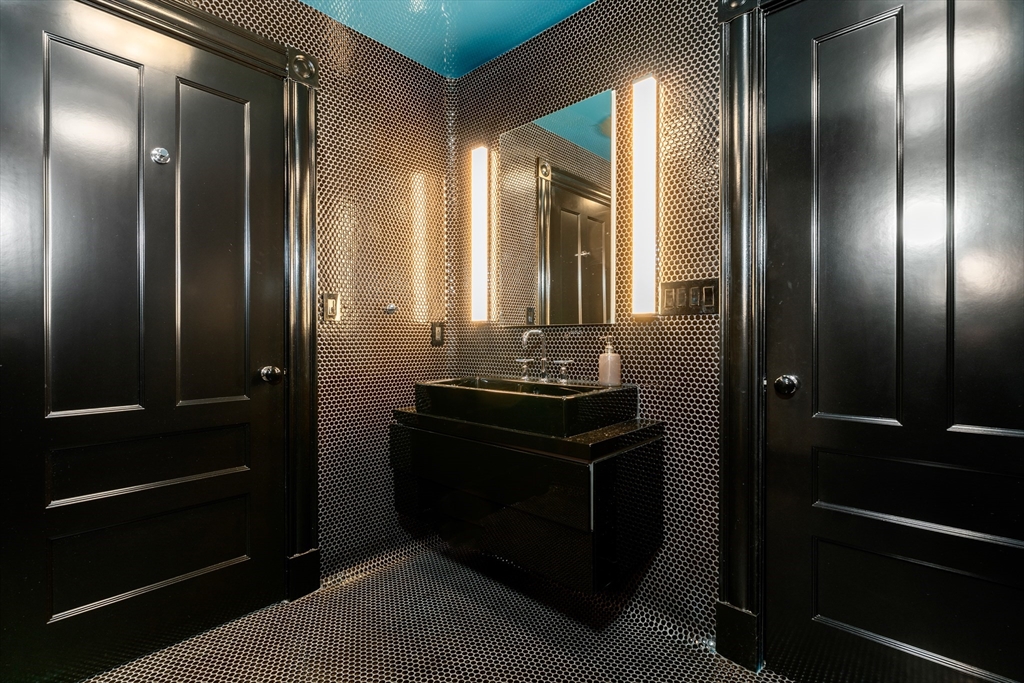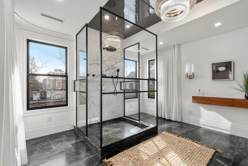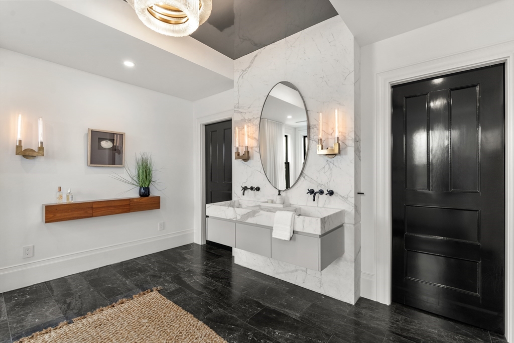 Meticulously renovated to the highest standards of design, this striking home artfully preserves its Victorian details while introducing luxurious modern amenities. Restored period features include soaring ceilings, grand proportions, intricate millwork, bay & bow windows, stained glass, pocket doors, built-ins, & wainscoting. Lavish updates include an entire wall of Hope's steel windows, app-controlled lighting & blinds, exquisite stonework, electric car charging, & irrigation. The sleek eat-in kitchen showcases custom cabinetry, a waterfall island, mirrored backsplash, and top-of-the-line appliances including a 6-burner gas range. An adjacent butler's pantry offers glass-fronted cabinets lined with antique mirror, a beverage cooler, & unlacquered brass counters & backsplash. An elegant primary suite is comprised of a bedroom with a fireplace, custom walk-in closet, and opulent bath with floor-to-ceiling marble, a glass-enclosed walk-in shower, and floating double vanity.