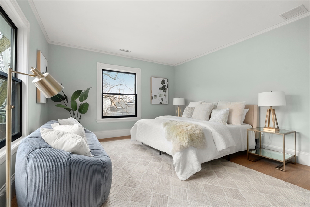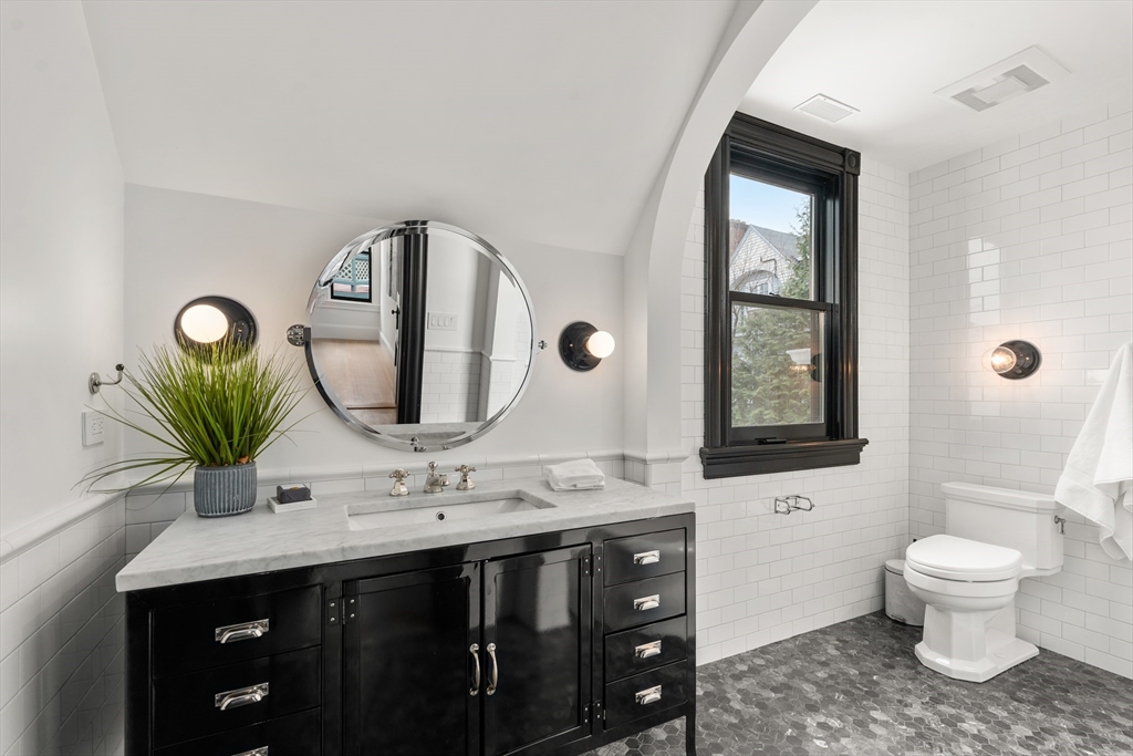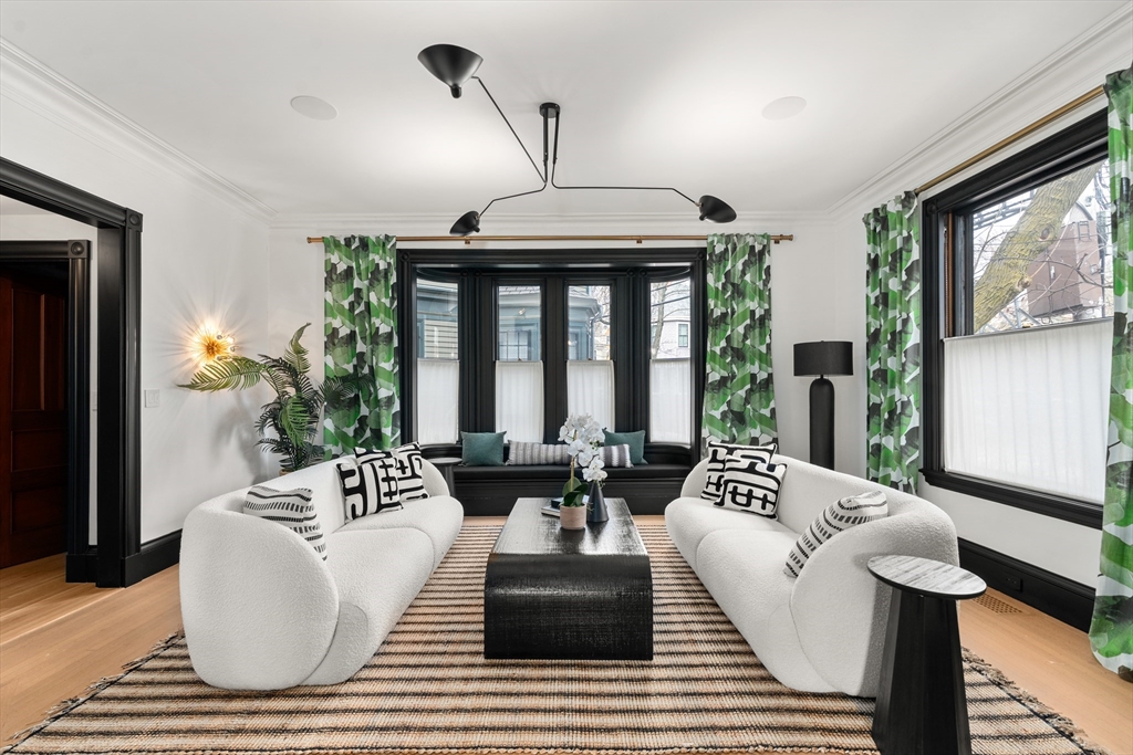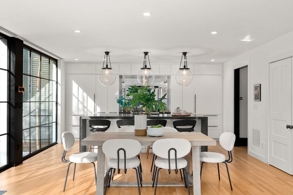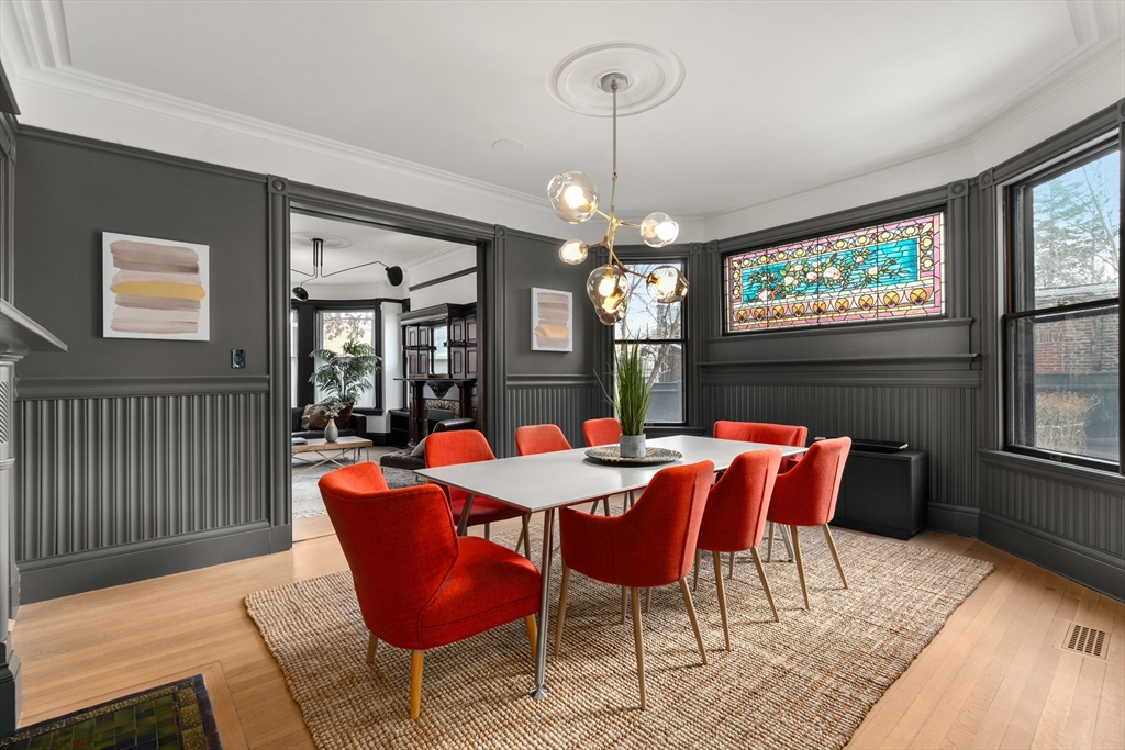 Meticulously renovated to the highest standards of design, this striking home artfully preserves its Victorian details while introducing luxurious modern amenities. Restored period features include soaring ceilings, grand proportions, intricate millwork, bay & bow windows, stained glass, pocket doors, built-ins, & wainscoting. Lavish updates include an entire wall of Hope's steel windows, app-controlled lighting & blinds, exquisite stonework, electric car charging, & irrigation. The sleek eat-in kitchen showcases custom cabinetry, a waterfall island, mirrored backsplash, and top-of-the-line appliances including a 6-burner gas range. An adjacent butler's pantry offers glass-fronted cabinets lined with antique mirror, a beverage cooler, & unlacquered brass counters & backsplash. An elegant primary suite is comprised of a bedroom with a fireplace, custom walk-in closet, and opulent bath with floor-to-ceiling marble, a glass-enclosed walk-in shower, and floating double vanity.