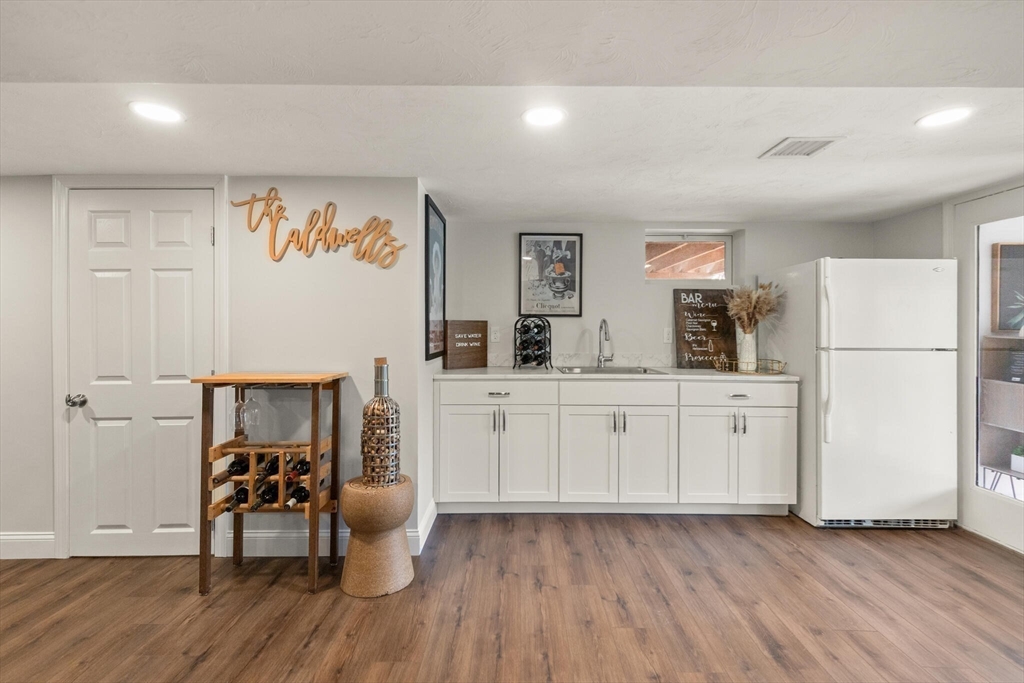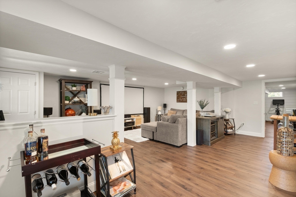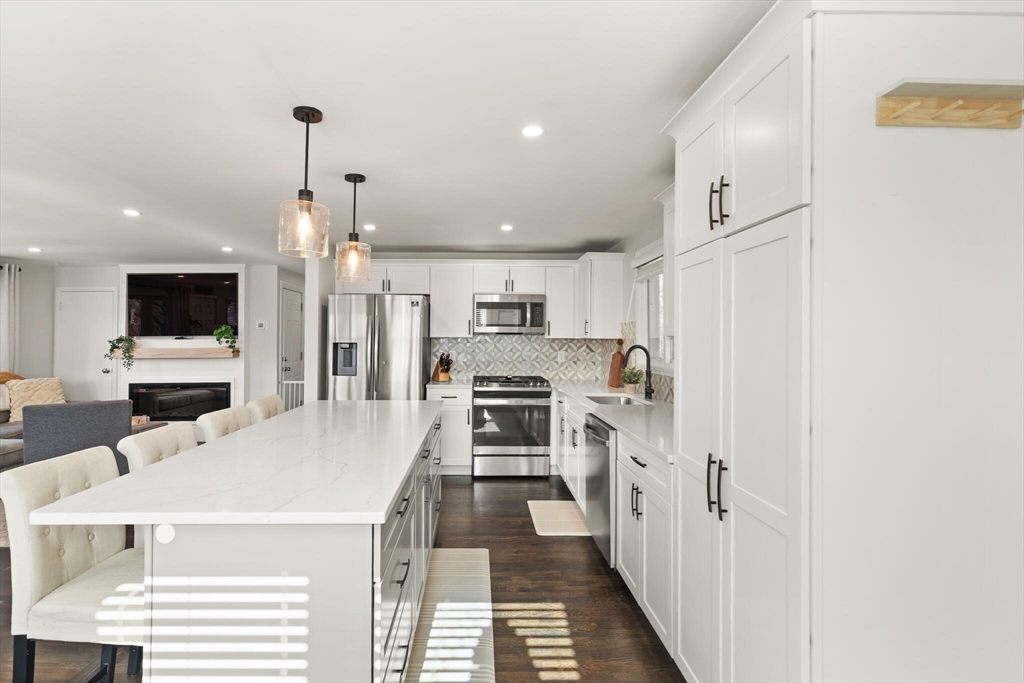 Beautifully updated and move-in ready, this home set on just over an acre offers modern style, flexible living space, and exceptional indoor-outdoor appeal. Major improvements within the past five years include a new roof, updated electrical and plumbing, newer HVAC systems, and updated appliances. The bright, spacious main level features an open-concept layout with hardwood flooring, a living room with fireplace, and a kitchen with center island and modern finishes. All bedrooms are on the main level, including a generous primary suite with updated en-suite bath, plus a second full bath and laundry. The back porch overlooks a large, fully fenced backyard with new stone patio and firepit. The walkout lower level offers a family room, wet bar/kitchenette, game room, half bath, so much storage or room to expand, & a three-season porch. Every detail thoughtfully considered, this home offers a rare combination of space, updates, and versatility with easy access to mjr routes and shopping.