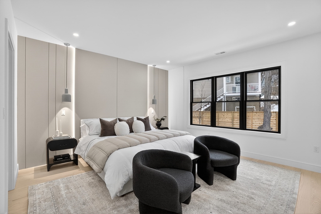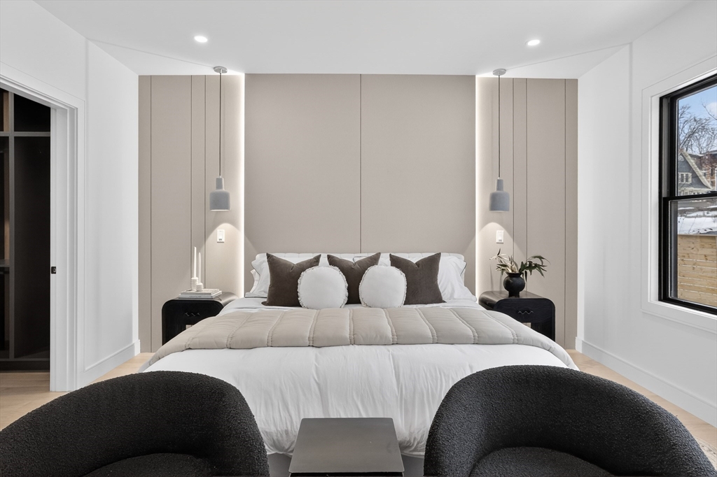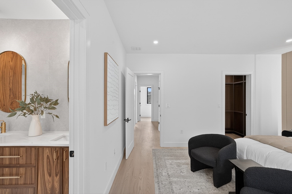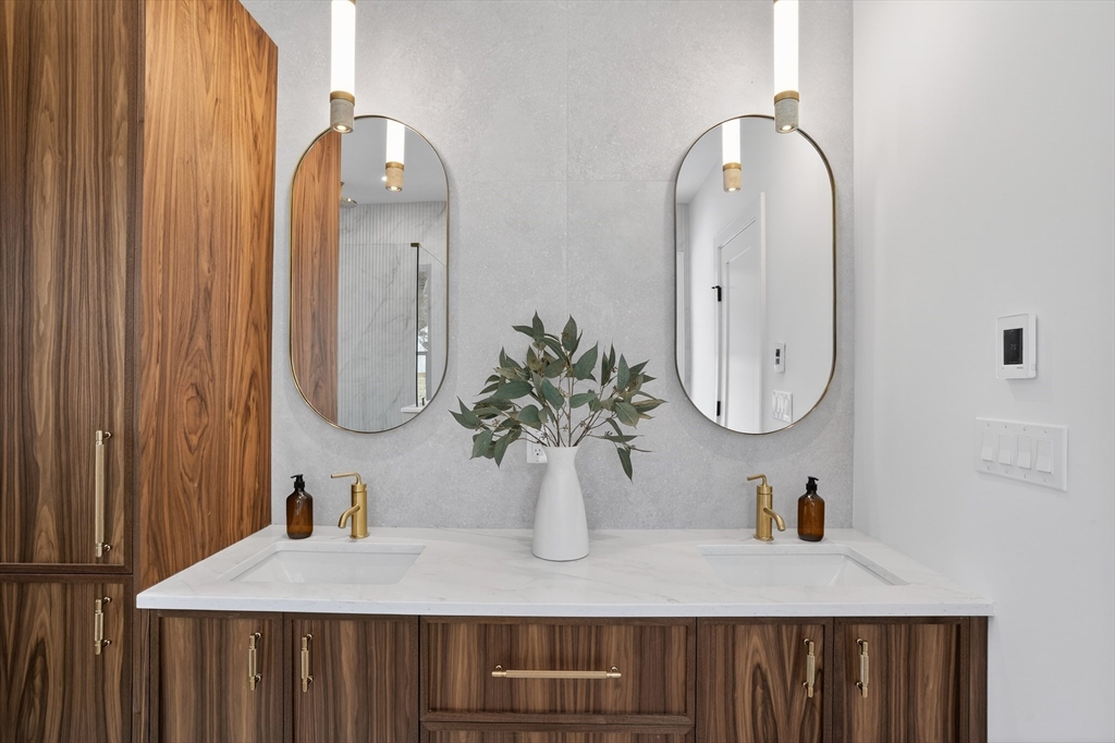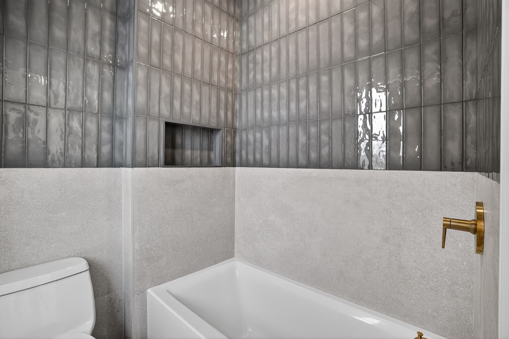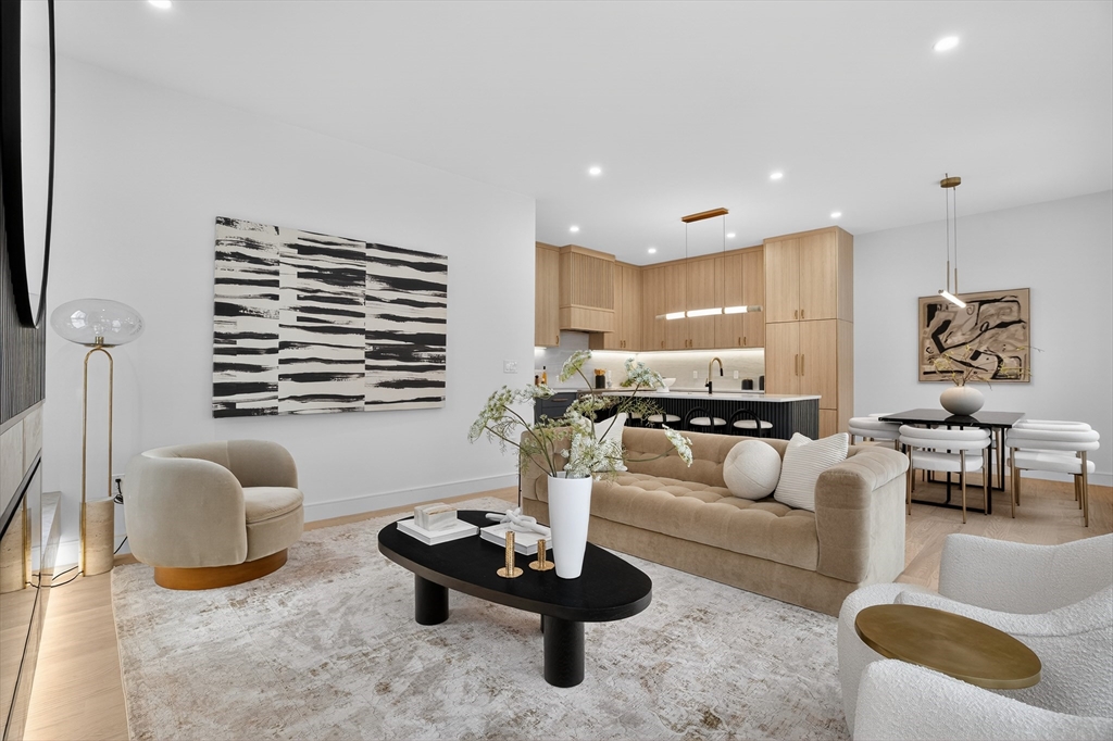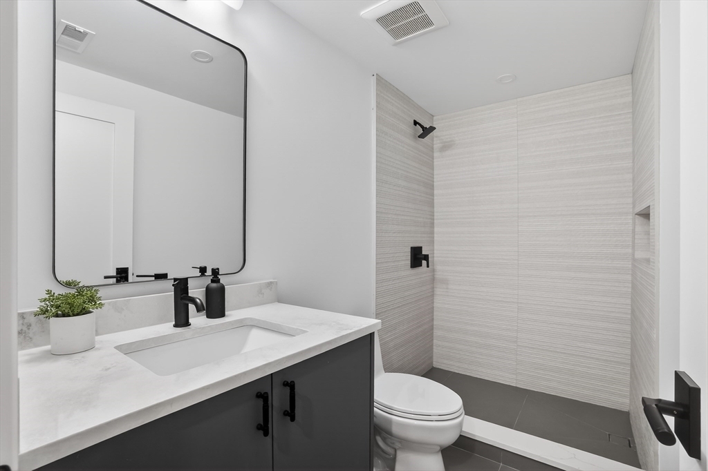 This craftsman style new construction townhome is located close proximity to Cabot School. Upon entering, you’ll find a coat closet and designer powder room with brushed brass accents. The open concept 1st floor offers many stunning features like a chef's kitchen featuring high-end appliances and gorgeous modern cabinets. The living room features a linear fireplace with wood slat wall detail accent and floating bench. There are 3 bedrooms on the 2nd level, including the primary suite with its very own walk-in closet and a gorgeous spa-like ensuite bathroom with soaking tub and walnut custom cabinetry. A full bathroom and laundry complete this level. The fully finished 3rd floor gives you bonus space with large windows. The lower level is the perfect place to turn into a gym, movie room, or playroom, and has a private bedroom with a full bathroom perfect for your guests or an office. Conveniently located in close proximity to Newtonville Village Center, the commuter rail, and 90/95.