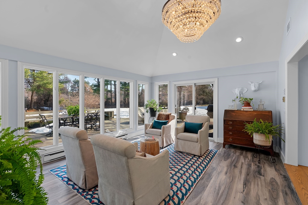 Rare Wayland offering with a stunning 1,000 sq ft permitted in-law apartment featuring a private entrance, full kitchen, living area, bedroom, bath, two walk-in closets, and washer/dryer—ideal for multigenerational living, guests, or potential rental income. Set on 1.7 private acres in sought-after Claypit Hill, this exceptional Colonial offers 6,000+ sq ft of refined living space. The main home features a spacious kitchen, fireplaced family and living rooms, a bright sunroom, private office, and a first-floor primary suite with walk-in closet and spa-like bath. Upstairs there are four bedrooms, including a second primary with en-suite. A finished basement, expansive deck, and 3-car garage complete this impressive property. Recent updates include new siding, trim, windows, entry doors, garage doors, gutters, exterior lighting, and updated landscaping. This beautiful home provides privacy, space, and versatility in one of Wayland’s premier neighborhoods.