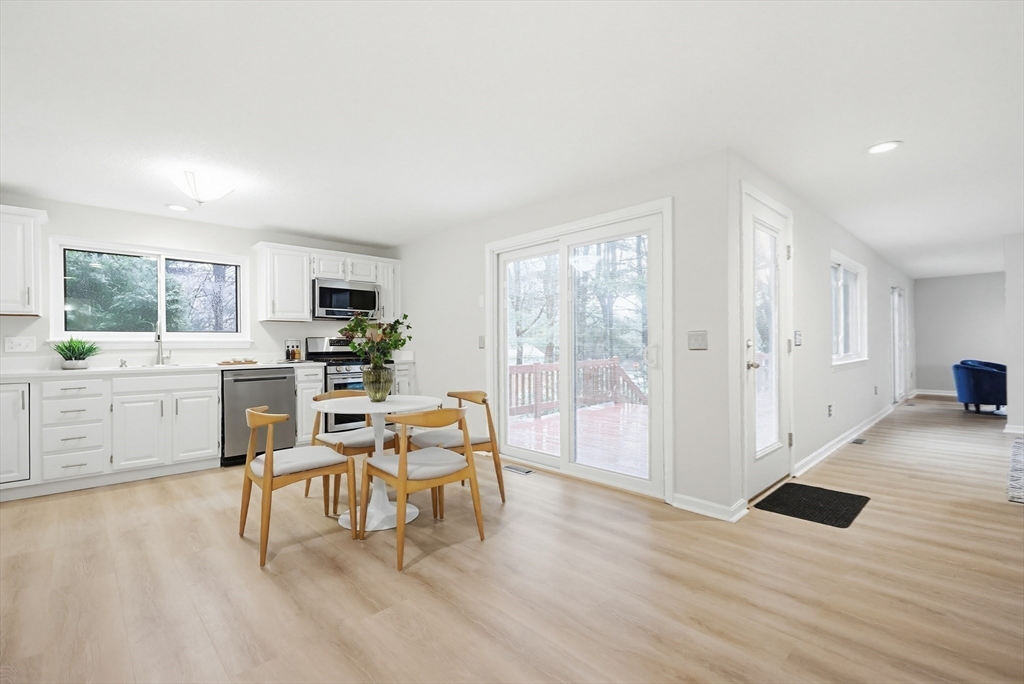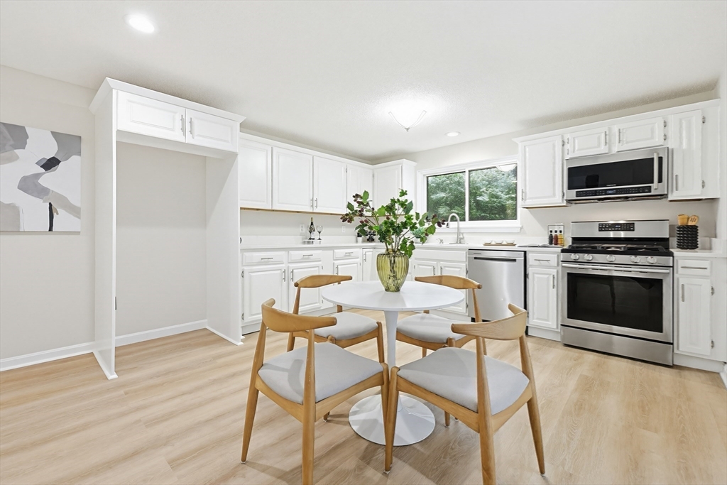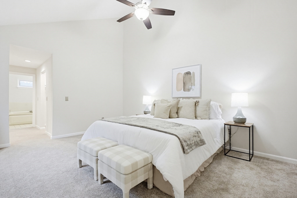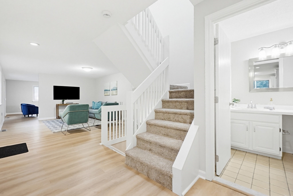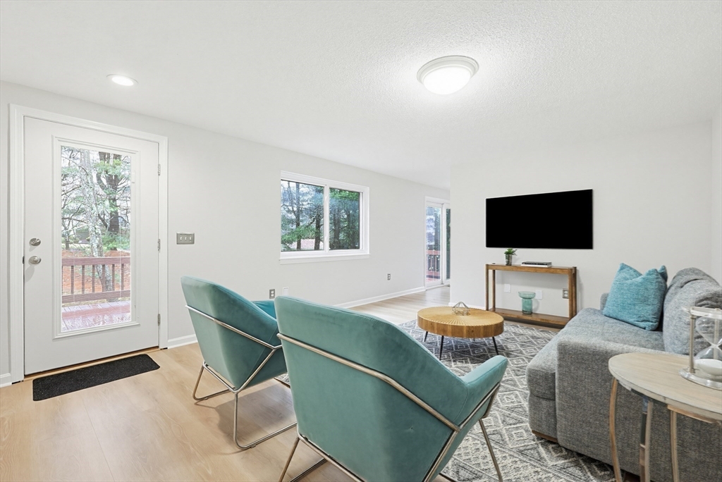 Welcome to this bright, beautifully refreshed 2-bedroom condo spanning three levels in the highly desirable Milford Country Club community. Offering nearly 1,600 sqft of living space, this home features fresh paint, new flooring, and an updated kitchen with quartz countertops and stainless steel appliances. The open layout is filled with natural light thanks to two sliding glass doors leading to a large private deck, perfect for relaxing or entertaining. The upper level features vaulted ceilings and a large primary suite with a huge walk-in closet and an ensuite bath with a jacuzzi tub. Additional highlights include an attached garage, lower-level laundry with washer and dryer gifted, and 2 full baths plus a half bath on the first floor. Enjoy access to golf, pickleball, a swimming pool, and clubhouse amenities, all just minutes from downtown Milford, shopping, restaurants, Route 495, and Route 16. Comfort, convenience, and country club living!!