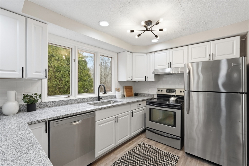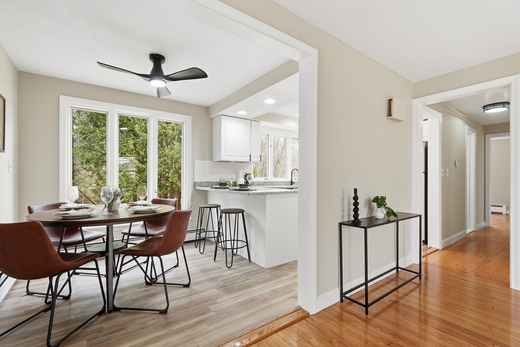 Tucked away on 3.5 scenic acres this beautifully refreshed Colonial offers the perfect blend of privacy, space, and modern updates. Set on gently elevated, level land, the property enjoys a peaceful setting with beautiful scenic mountain views to the front. Inside, you’ll find over 2,000 sq ft of living space, featuring refinished hardwood floors throughout, an updated kitchen with new appliances and granite countertops along with refreshed bathrooms. The spacious living room flows seamlessly into the dining area and kitchen and is anchored by a charming chimney and mantel. 4+ bedrooms, 2 full baths, plus finished walkout space for extended living or potential bedroom use. Additional features include a heated one-car garage. Major systems have been addressed- a new HW tank, a serviced high-efficiency heating system, updated well, and completed Title V work, offering peace of mind. Outside it features both an uncovered front porch and a large covered, fully screened updated porch.