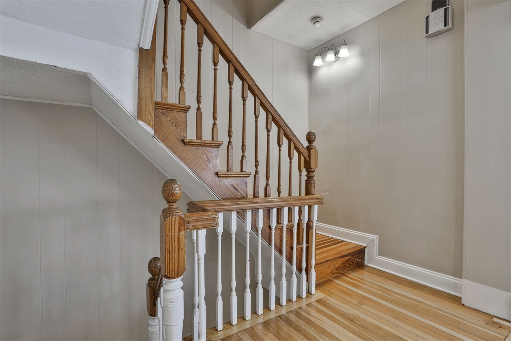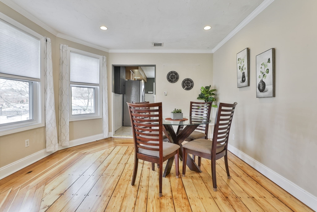 3 Bedroom Town House with large eat in kitchen, open, airy and large living and dining rooms with gas fireplace in living room and both have freshly finished gleaming hardwood flooring. Gas heat NEW HVAC 2026 and new roof 2022! Front entry has large closet and serves as a great mudroom and is heated. Primary bedroom on main level has large double closets. Phenomenal location less than a mile to Downtown Melrose, across the street from Whole Foods and the 131/137 bus to Oak Grove with a stop a block from Wyoming Hill Station. Low Condo Fee.