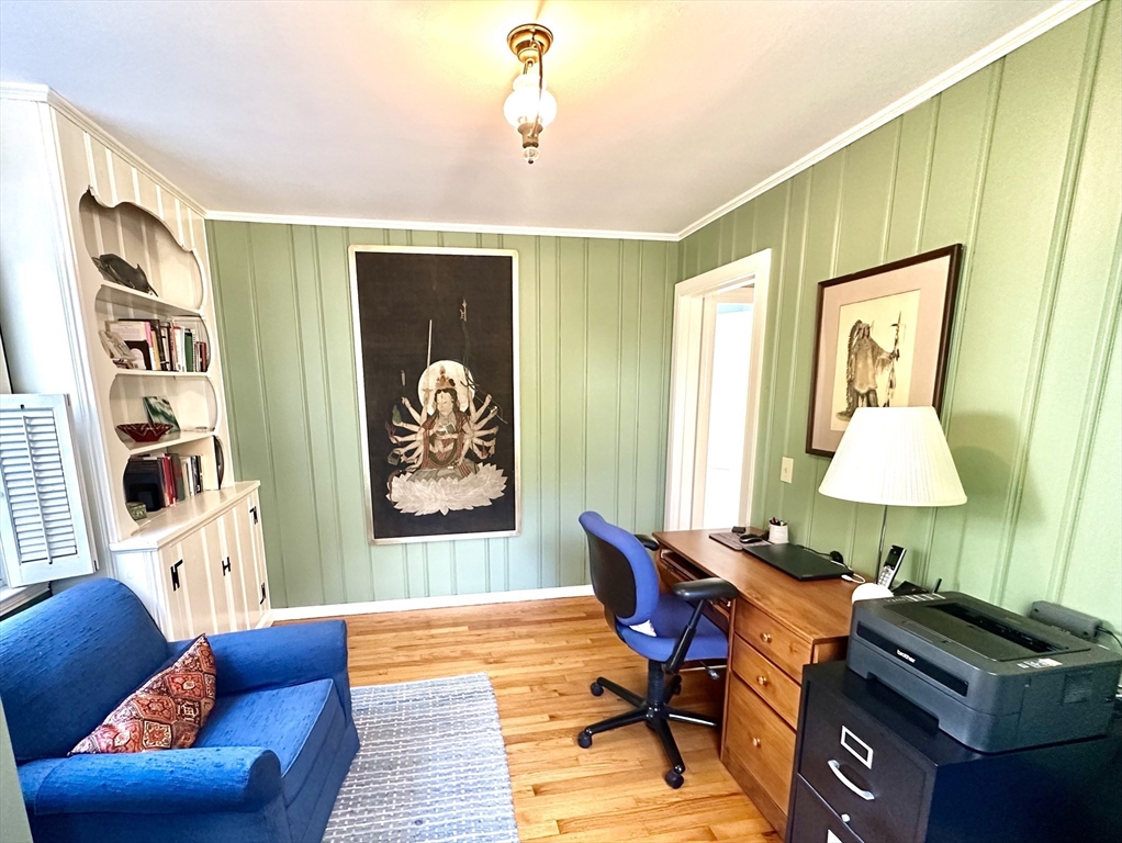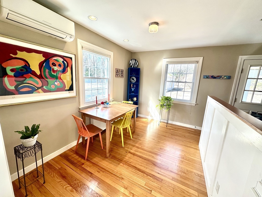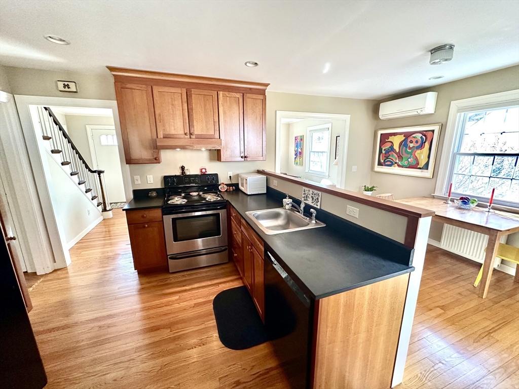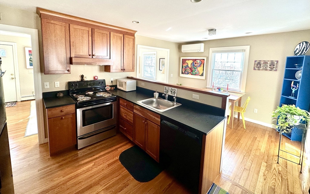 Classic 1950s Cape just up the hill from Florence Center tucked away on a quiet street. Beautiful light-filled rooms with hardwood floors, kitchen with cherry cabinets, 1st floor home office/den could become 4th bedroom. Primary bedroom + full bath on 1st floor, 2 bedrooms + 1/2 bath on the second floor. Many replacement windows fully insulated with dense-pack cellulose. 1 ductless mini split on the first floor provides added comfort in the shoulder seasons and AC in the summer months. Deep back yard with garden beds and perennial plantings, one-car garage with work space and extra storage. Lovely large rear porch (w/ removable screens), overlooking the back yard. This is a gem of a house and is close to The Bike Path, Look Park, PVTA Bus route, and Fitzgerald Lake Conservation area.