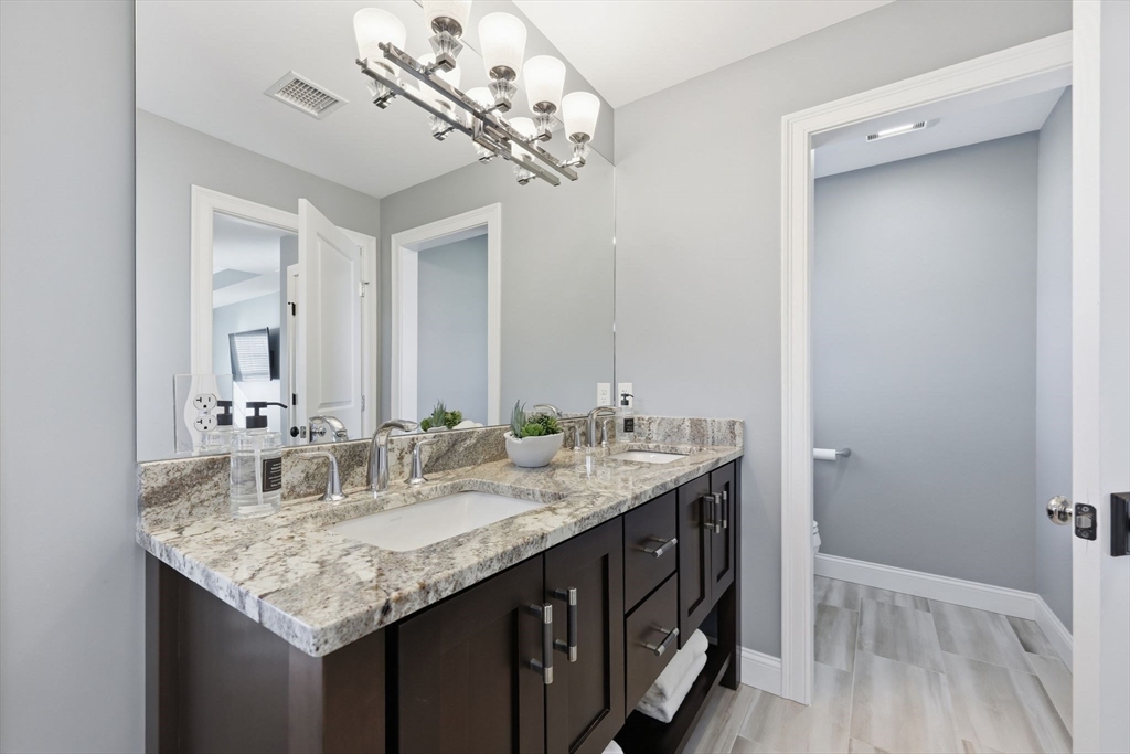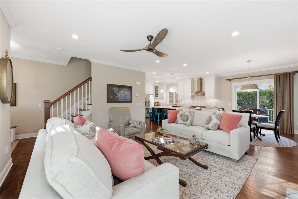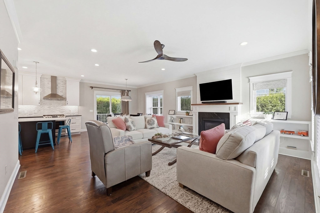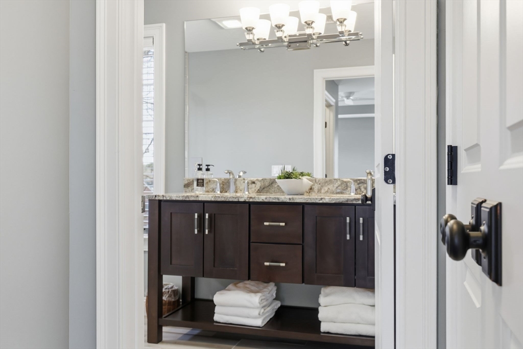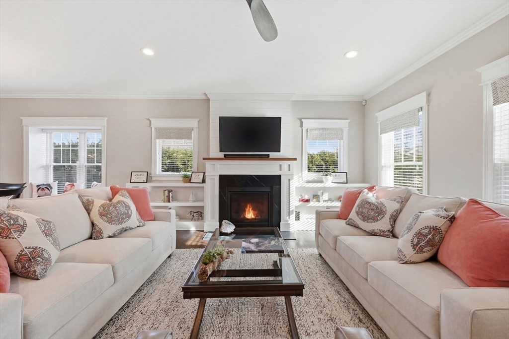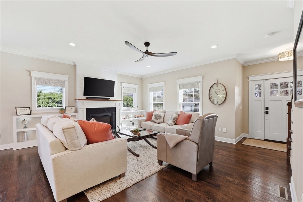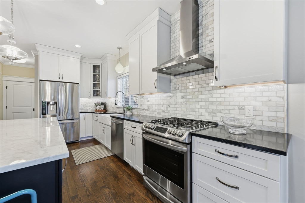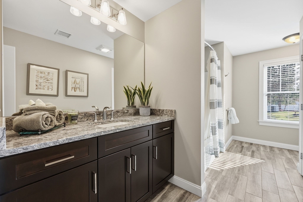 Don’t miss this beautiful custom Colonial in the heart of East Longmeadow! The builder’s own home, it showcases quality craftsmanship and Meticulously maintained throughout. The open main level features hardwood floors, recessed lighting, a gas fireplace, and sliders to a spacious composite deck—perfect for entertaining or relaxing. The eat-in kitchen offers soapstone countertops, a Carrara marble island, stainless steel appliances, and abundant cabinetry, plus a first-floor laundry. Upstairs, the primary suite includes a spa-like bath with oversized tile shower, double vanity, granite countertops, and a large walk-in closet. Three additional bedrooms and a full bath complete the second floor. The finished lower level adds flexible living space, a half bath, and great natural light. Central vacuum, security, irrigation, and a prime location near schools, shopping, and dining complete the package.