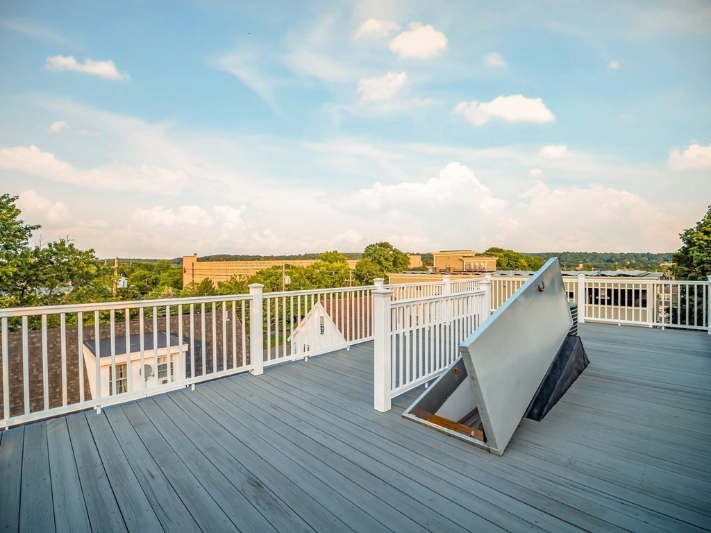 Beautiful, high end two story condo for rent; close to everything Winchester has to offer! This unique penthouse dulpex condo offers all the space of a single family home with an open concept floor plan featuring high end finishes and hardwood floors throughout. Enjoy a private entrance, a stunning living room w/ high ceilings, a beautiful gas fireplace and high end buit ins; chefs kitchen w/adjacent dining area, pantry/ office area & sliders to deck. Two generous/ oversized sized bedrooms upstairs perfect for sharing if need be; with a stunning designer bath and great closet space. 3 balconies and a unique private roof deck, easy to access with full stairs; perfect for entertaining! This home is not your average rental; the quality/craftsmanship is like no other! Two off- street parking spaces, laundry in unit & fully applianced! This home is ready to enjoy, move right in! Just minutes to the town center, train to Boston, Middlesex Fells & a few miles from Cambridge & downtown Boston!