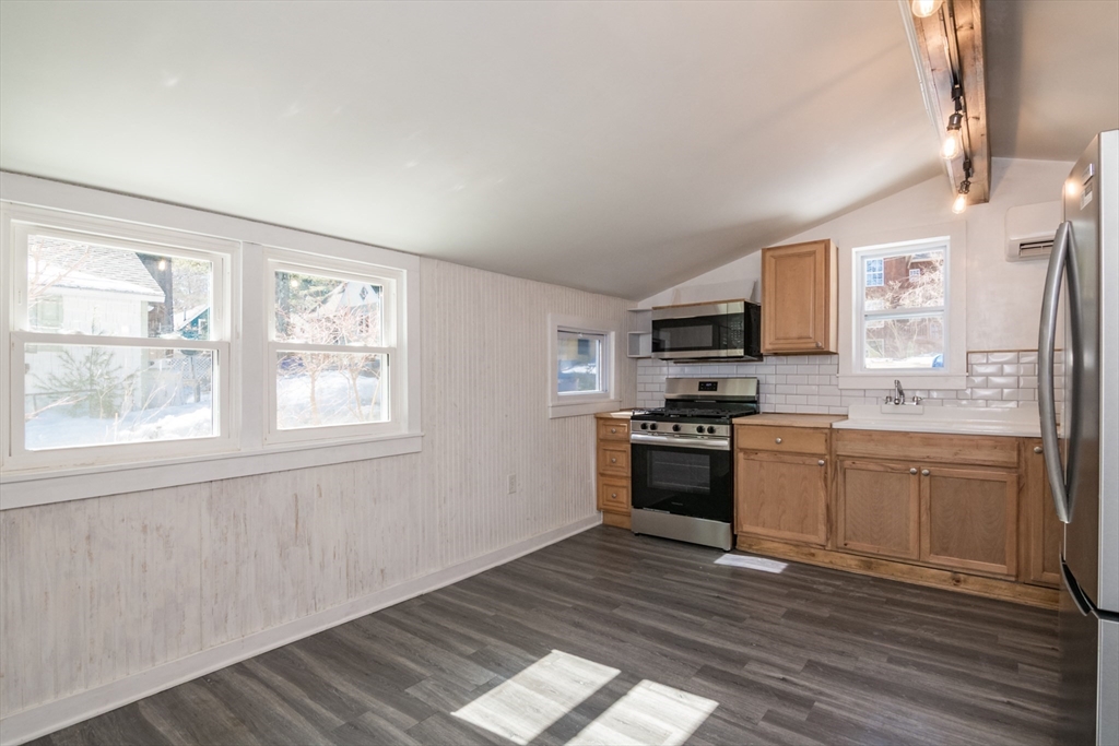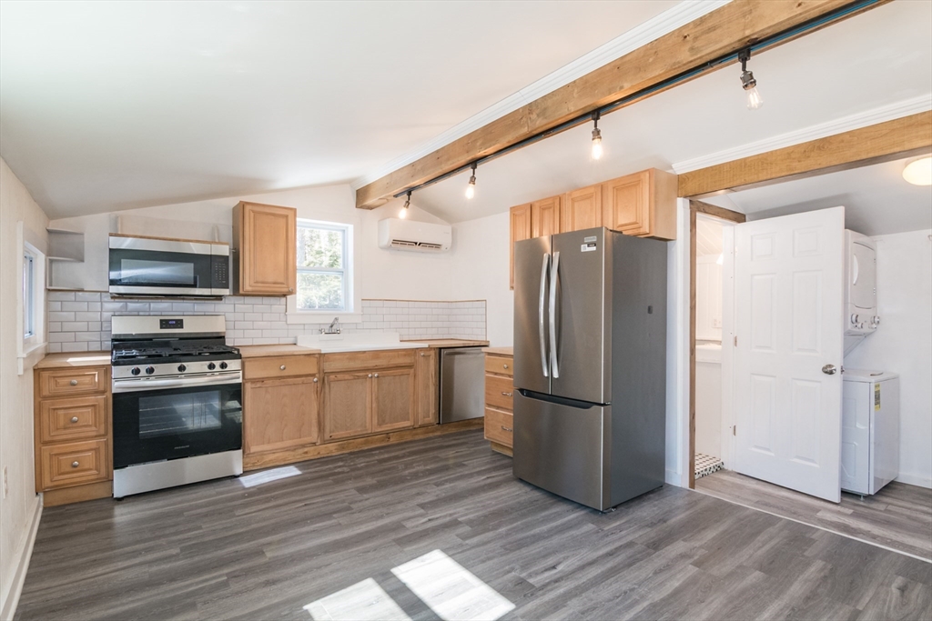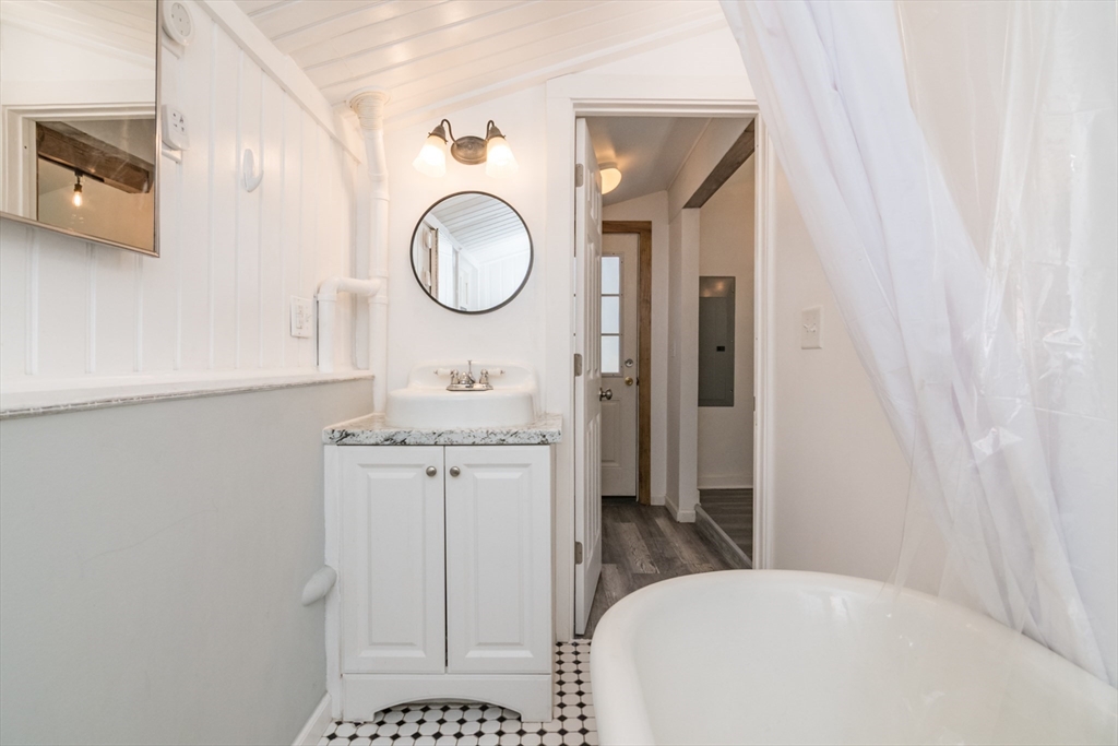 Smart house alternative in this detached condo cottage! Discover the glamor of 43 Laurel Park, where modern upgrades meet old-world charm! This entirely remodeled home boasts updated plumbing, new windows, appliances, water heater and a new 200-amp electrical service. The first floor features a large eat-in kitchen with stainless steel appliances, laundry area, living room with vintage style tin ceilings, a full bath with a romantic clawfoot tub/shower, and a versatile bedroom/den/home office with beamed ceilings. The second-floor primary bedroom, with the beautifully refinished original, wide-plank flooring, includes an en-suite bath with a soaking tub. Year-round comfort is guaranteed with new mini-splits and enhanced insulation from Mass Save, ensuring energy efficiency. Plus, the unfinished stand-up basement is insulated and has a vapor barrier, excellent for storage. Corner location gives this cottage extra privacy and a sense of open space around it. Showings start immediately