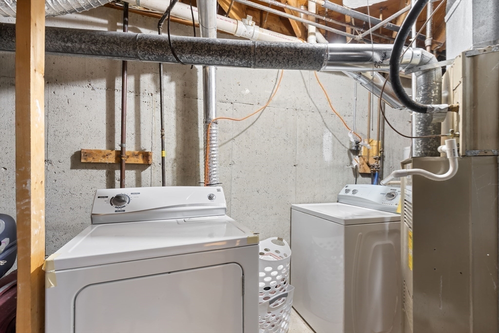 Welcome to 73 Trailside Way! This rare 2 car garage townhouse boasts natural light and presents a thoughtfully designed living space, prepared for its discerning occupant. This unit encompasses a substantial 1363 square feet of living area, 2 large bedrooms with private full baths providing a spacious environment for comfort, a lovely fireplace in the living room and sliding doors to a serene deck overlooking a beautifully maintained community. Entertain or simply enjoy meals in the formal dining room with easy access to a half bath. This unit checks all the boxes, parking, space,storage and in unit laundry .