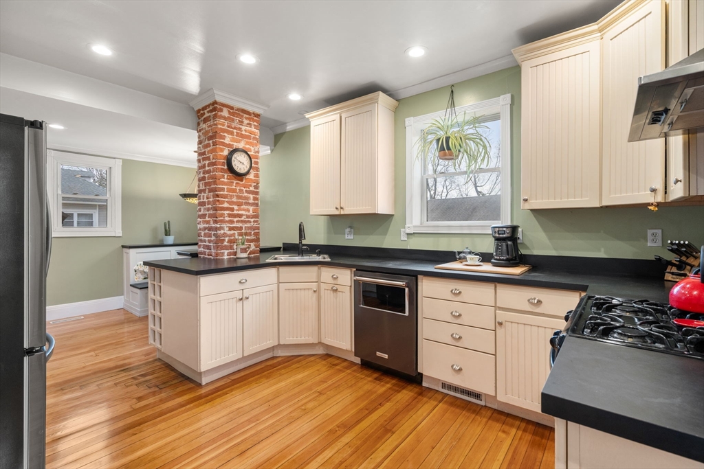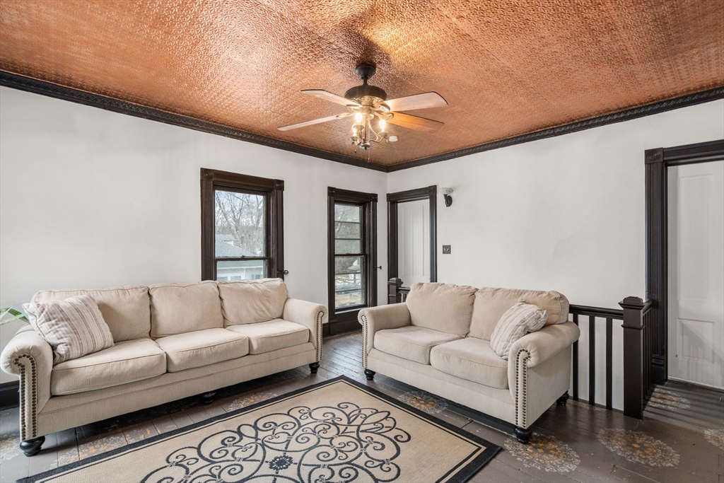 This charming Victorian offers 3 bedrooms & 2 full baths, set on a dead-end road with pond frontage — an opportunity in Uxbridge for all under $500K. Inside, newly refinished golden hardwood floors bring warmth and highlight the home’s classic details. The main level features 9-foot ceilings, creating a bright, open feel, along with an eat-in kitchen, first-floor laundry, and comfortable living space suited for both everyday life and entertaining. Upstairs, you’ll find three bedrooms and a full bath, along with a spacious open family room that offers flexibility for relaxing or working. Additional attic space provides potential for walk up expansion. The fenced yard is ready for children playing, gardening, and summer evenings. While the 3-bay garage provides ample room for vehicles, storage, or a dedicated workshop, plus additional underground storage. Close to downtown & local amenities, this home blends antique charm with abundant space and a peaceful setting.