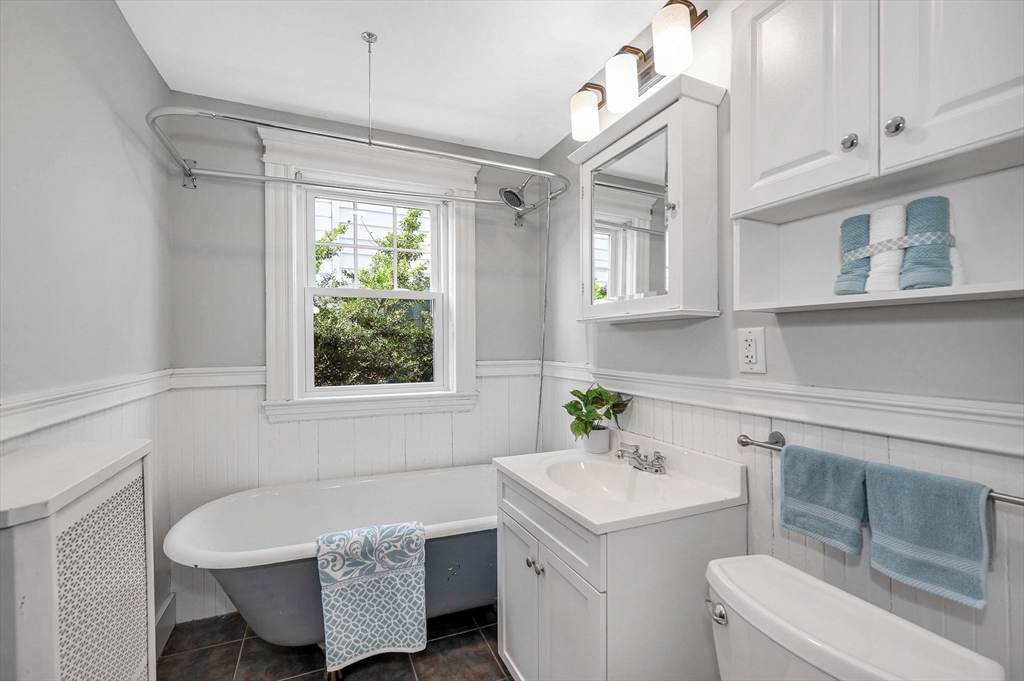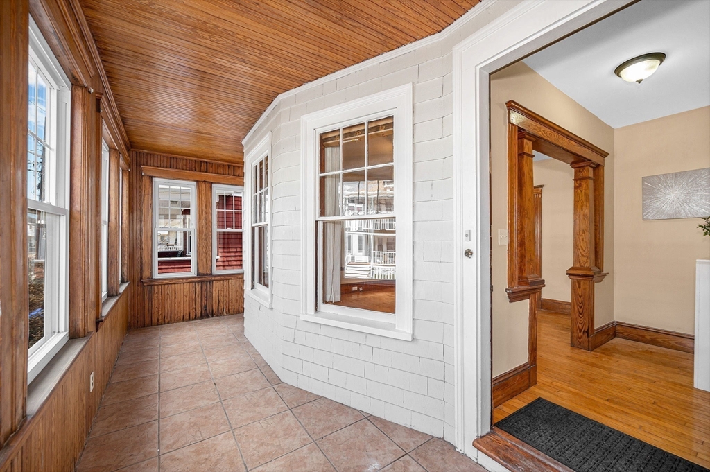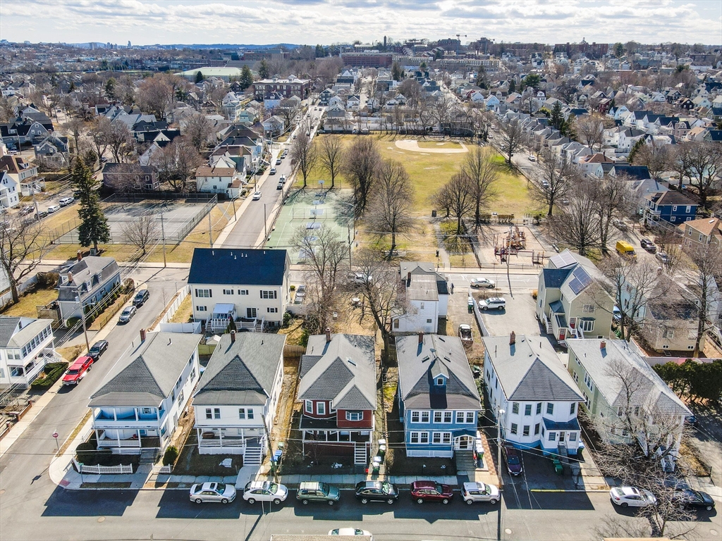 Top location near Tufts, commuter rail, parks and highway. This gorgeous first floor 5 room, 2 bedroom condo is immaculate and ready for new owners! You'll love the high ceilings, the Birdseye maple flooring, formal diningroom with built in hutch and stained glass window. Modern eat in kitchen with granite counter tops, stainless steel appliances and gas cooking. Formal livingroom and a bright sunroom off the rear of kitchen. Over 1000 sq ft of living area. Energy efficient with updated doublepane windows, and blown in cellulose insulation in walls. Enclosed front porch. Outdoor space. Access from unit to full basement (shared) for extra storage and your own laundry. A great combination of turn of the century charm and modern comforts! List of updates attached in MLS. Short walk to Tufts and new Green line, commuter rail and bus. Walk Score of 88 . Showings start by appointment Saturday or come by Open House Saturday 11:30-1:00