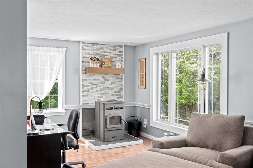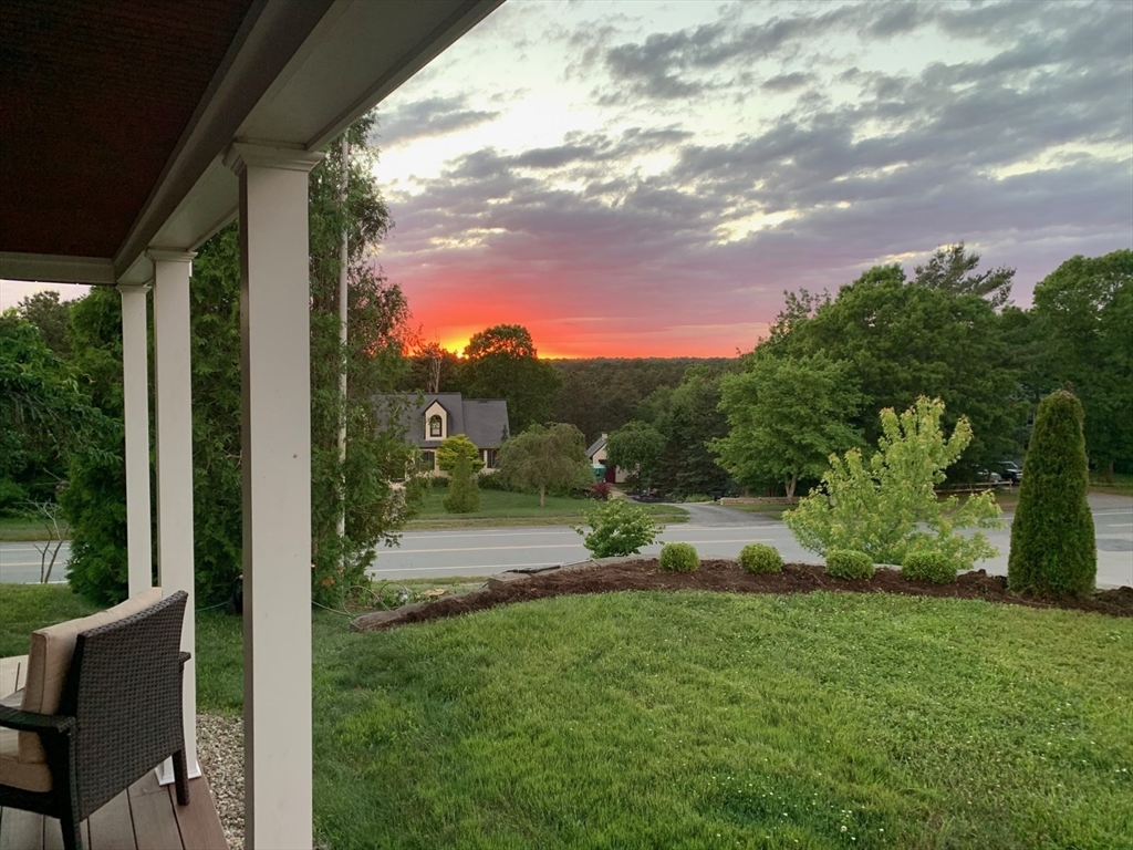 PRICED BELOW MARKET VALUE, PRICED TO SELL! Enjoy beautiful sunsets from the enormous wrap-around porch in this 3 bedroom home in sought-after Ponds of Plymouth. Bounded by a treed lot-line for privacy, this home sits on a corner lot with sprinkler system. Main floor features an open floor plan with wood flooring throughout. Kitchen has newer stainless appliances and opens into dining room, complete with wood detail and chair-rail. Front-to-back living room with office space, cozy pellet stove, and half bath complete the main level. Upstairs features a large master bedroom with walk-in closet, plus two very generous-sized bedrooms and large bathroom with separate powder room that opens to master bedroom. Lower level has large family room w/closet & unfinished space for plenty of storage. Looking to considerably reduce your electric bills?? This home has solar panels to help with that! Short distance to Whites Pond & Big Sandy Pond (recreational). Offers due Tues 3/24
