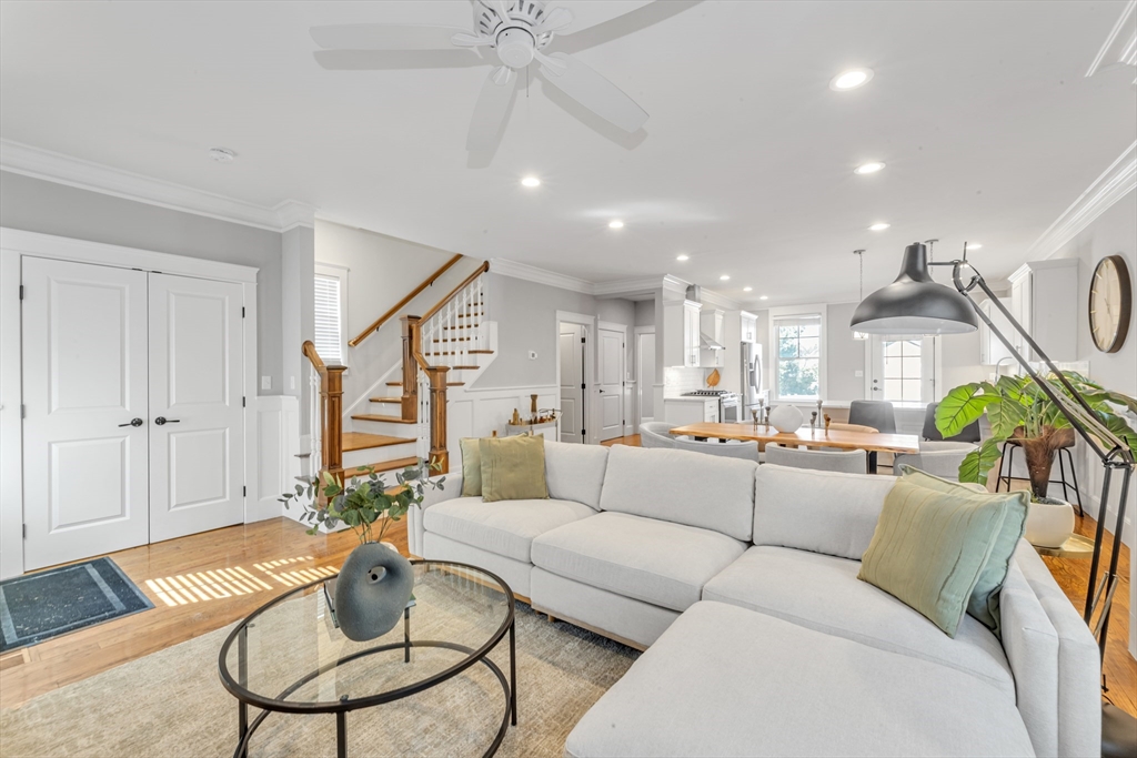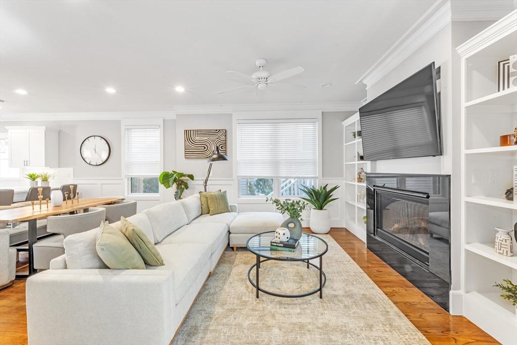 Built in 2019 and crafted to live like a single-family residence, this beautifully appointed townhouse condominium offers sophisticated design, spacious interiors, and exceptional attention to detail. The sun-filled open main level is ideal for entertaining and daily living alike, centered around a designer kitchen with quartz countertops, stainless steel appliances, custom cabinetry, and an adjoining pantry. The living room features a custom built-in bookcase, while elegant moldings and refined finishes throughout reflect the home’s quality and craftsmanship. Each bedroom is a private ensuite sanctuary, highlighted by a serene primary suite with walk-in closet. The finished lower level provides valuable bonus space for a family room, media area, or home office. Complete with second-floor laundry, efficient HVAC, and two-car parking, this turnkey home delivers comfort, luxury, and modern style in equal measure.