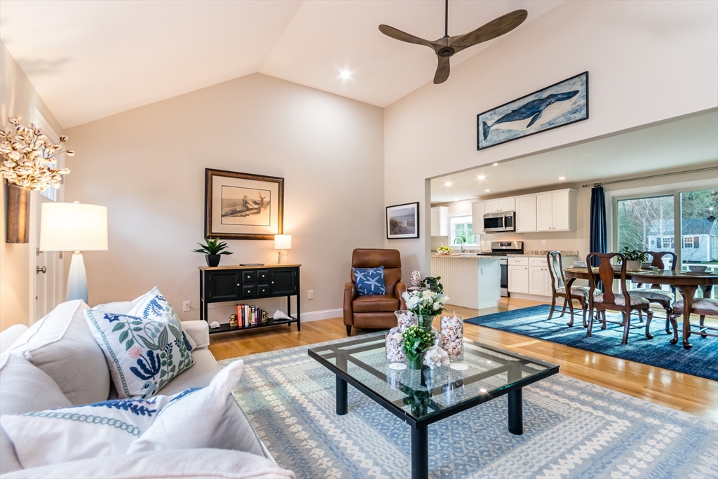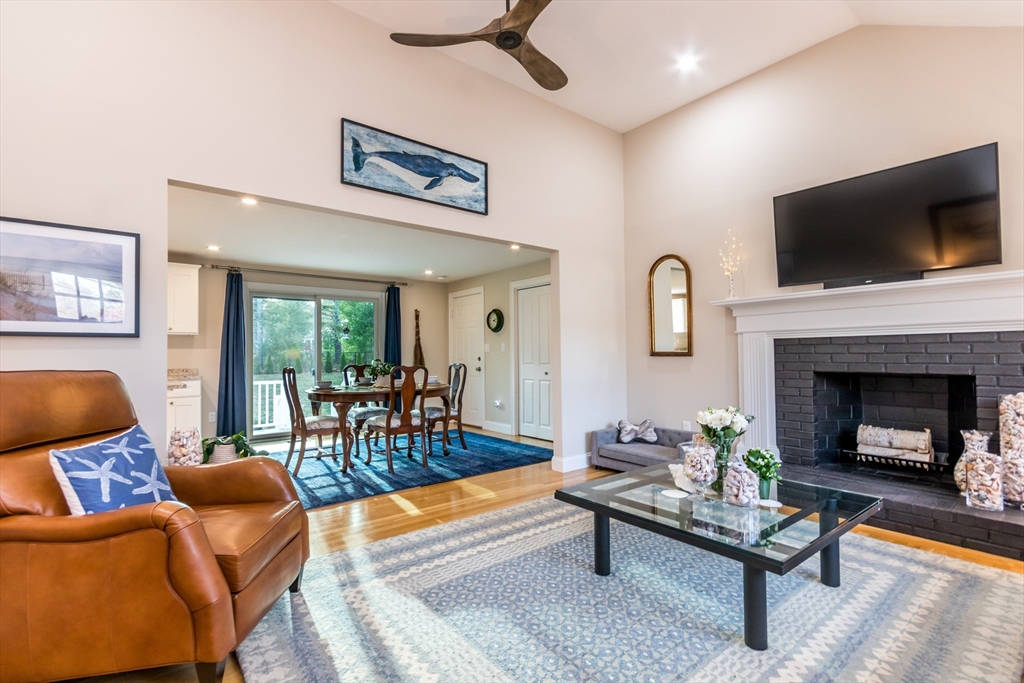 Turnkey perfection meets long-term value. The definition of ''move-in ready,'' this home had an exhaustive renovation in 2021 (new gas heat, A/C, siding, windows). The current owner has continued to elevate the property with practical upgrades, including connecting to the Mashpee sewer. Inside, the vaulted living room is open and inviting, anchored by a wood-burning fireplace. Details throughout - soft-close cabinetry, granite countertops, shaker-style doors, stainless steel appliances, and a sleek kitchen island - speak to the crisp, modern aesthetic. There are three well-proportioned bedrooms, including a spacious primary suite with its own updated bath. The transition to the backyard is seamless, via updated sliders onto the low-maintenance composite deck. Outside, the new, fully fenced lawn, ideal for containing pets or play, maintains its wooded privacy. For the smart buyer seeking truly turnkey single-level living in an appreciating neighborhood, this home checks all the boxes!