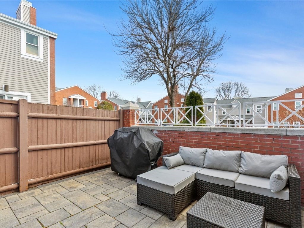 Beautiful corner unit in the highly desirable, pet-friendly Summit Place. This charming 2-bedroom, 1.5-bath condo features a private patio entrance with outdoor seating, perfect for relaxing or entertaining. The sun-filled living room offers a stunning granite fireplace and an open, inviting feel.Both bedrooms are generously sized with ample closet space, including a primary bedroom with direct access to a full bath with dual vanities. Rare attic storage provides extra space not found in many units.Recent updates include cabinets, windows, flooring, hot water heater, energy-efficient insulation, heating and cooling systems, kitchen appliances, patio pavers, and in-unit washer/dryer.Perfect for commuters, walking distance to the commuter rail with easy access to Route 1 and major highways, yet tucked away in a quiet setting.