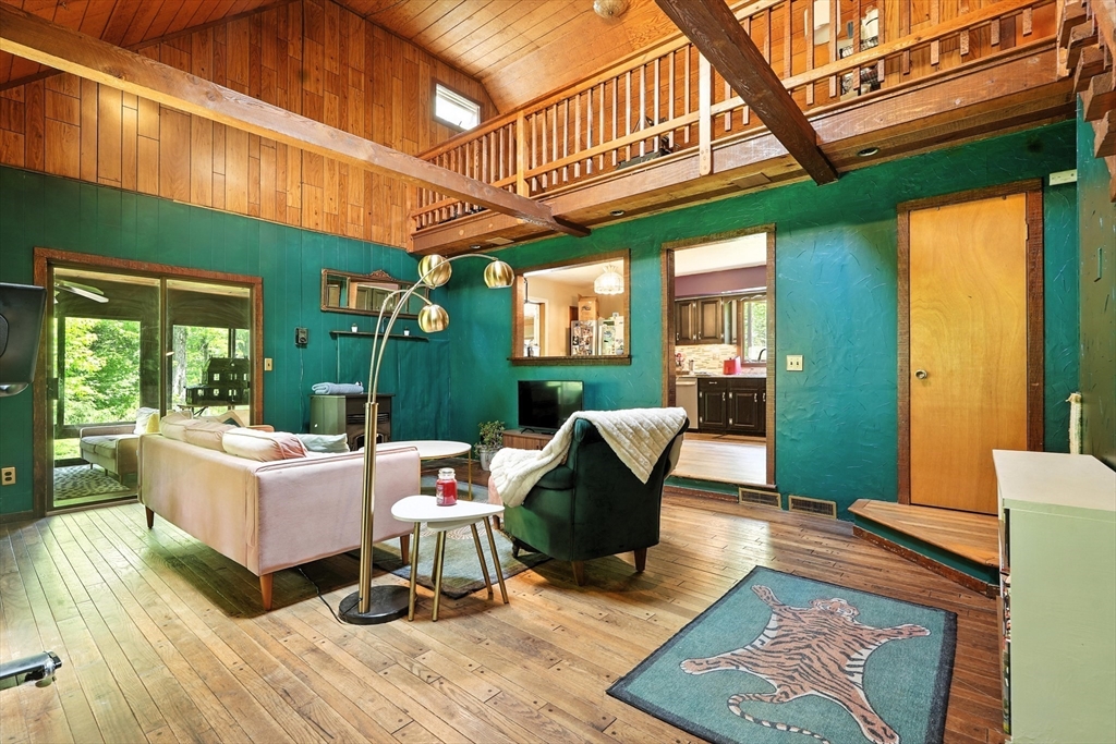 Welcome to your year round serene escape! This 3 bedroom 2.5 bath home offers a seamless blend of modern style & rustic tranquility. The main level features cathedral ceilings along with 2 bedrooms & a full bathroom. Upstairs you will find a loft space that overlooks the main living area – ideal for a home office or reading nook – along with a large bedroom & half bath. An additional living space is featured in the lower level - perfect for guests or a studio space. Enjoy the outdoors in every season with multiple porches, including an enclosed porch – the perfect spot to unwind and take in the tranquil surroundings. With a newer septic system and durable metal roof, this home offers both comfort and peace of mind. Set on a quiet country road, you’re just minutes from the lake, hiking trails, ski mountains, and all the natural beauty that Western Massachusetts has to offer. Whether you are looking for a home or a place to get away, this one has what you're looking for all in one!