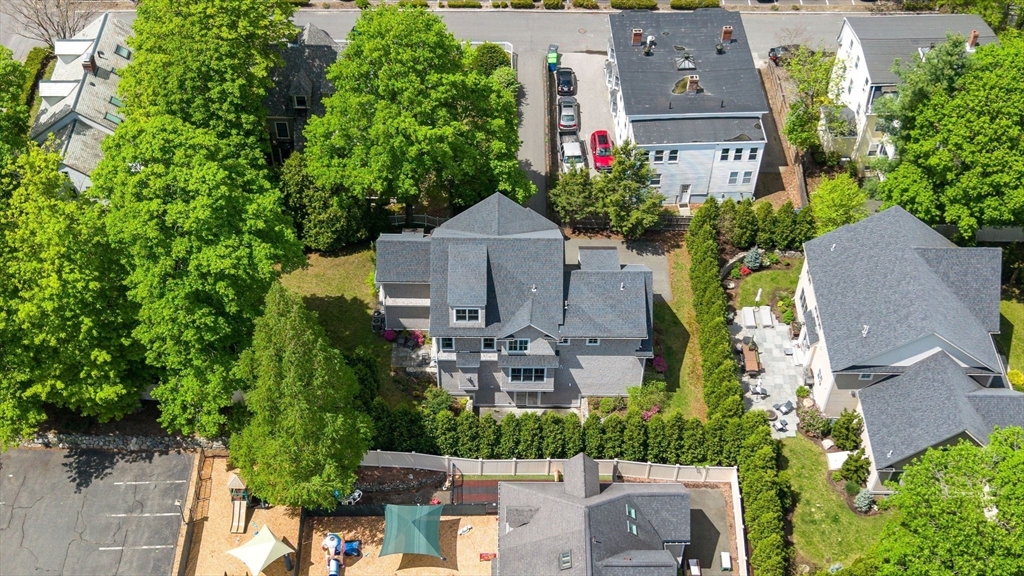 Built in 2018 and set on a sun-filled, level lot tucked quietly off the street, this contemporary home offers exceptional privacy with unbeatable convenience, just minutes to Wellesley Hills Station, cafes, Brook Path, and top schools. The thoughtfully designed open layout features a bright kitchen/family room with coffered ceilings, gas fireplace, and top-tier appliances. 5 bedrooms and 4.5 marble-appointed baths offer flexible living for every need. The 2nd floor features a luxurious primary suite with a spa-like primary bath, along with three additional bedrooms ideal for family living. A private 3rd floor suite with full bath provides a perfect retreat for guests or extended family. The walk-out lower level offers 9-foot ceilings, a full bath, and flexible living space. Landscaped grounds include a flat play yard, mature evergreens for privacy, bluestone patios, and elegant stonework. The two-car garage includes an EV charger. A perfect blend of modern luxury and in-town living.