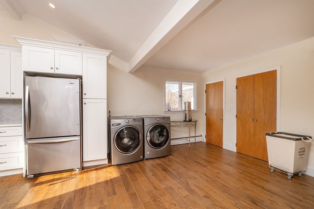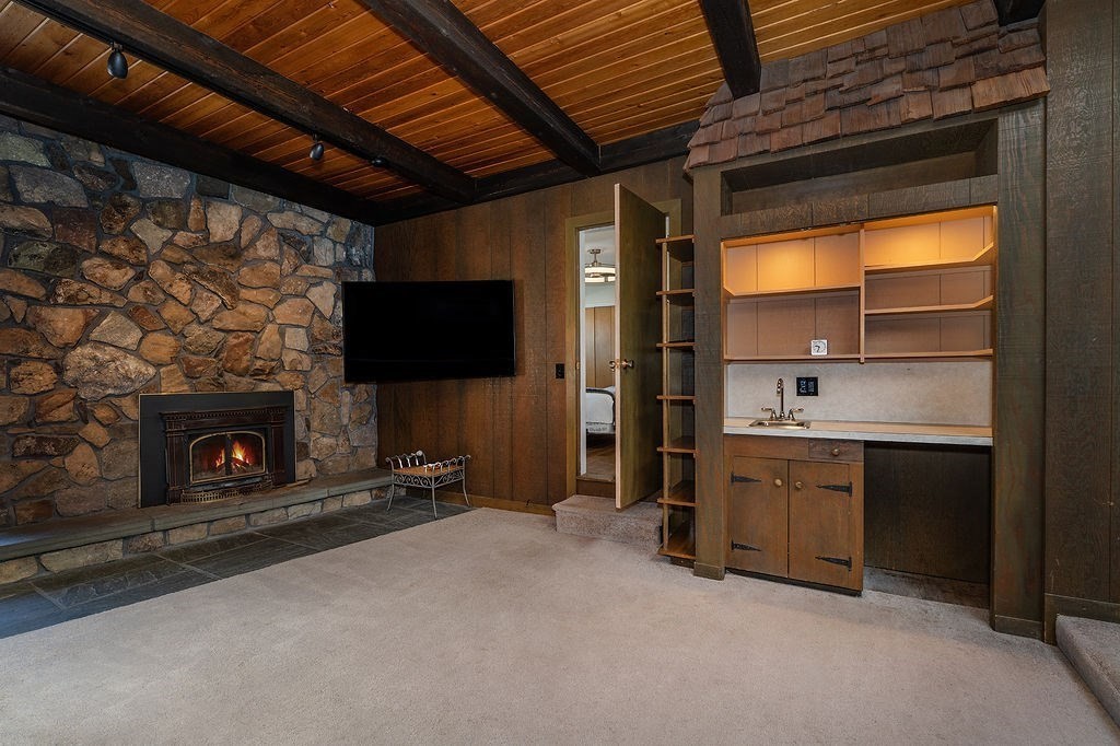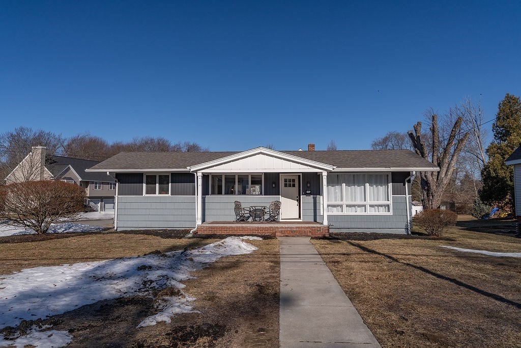 Enjoy effortless single-level living in this charming two-bedroom Ranch, perfectly positioned on a spacious corner lot. The heart of the home is a sun-drenched living room boasting dramatic vaulted ceilings and a cozy fireplace, ideal for crisp evenings. The layout features a functional kitchen, 1.5 baths, and a full cellar offering abundant storage or workshop potential. Step outside to private patios designed for al fresco dining, complemented by the convenience of a two-car garage. First viewing at the open house Saturday 3/21 12-2pm.