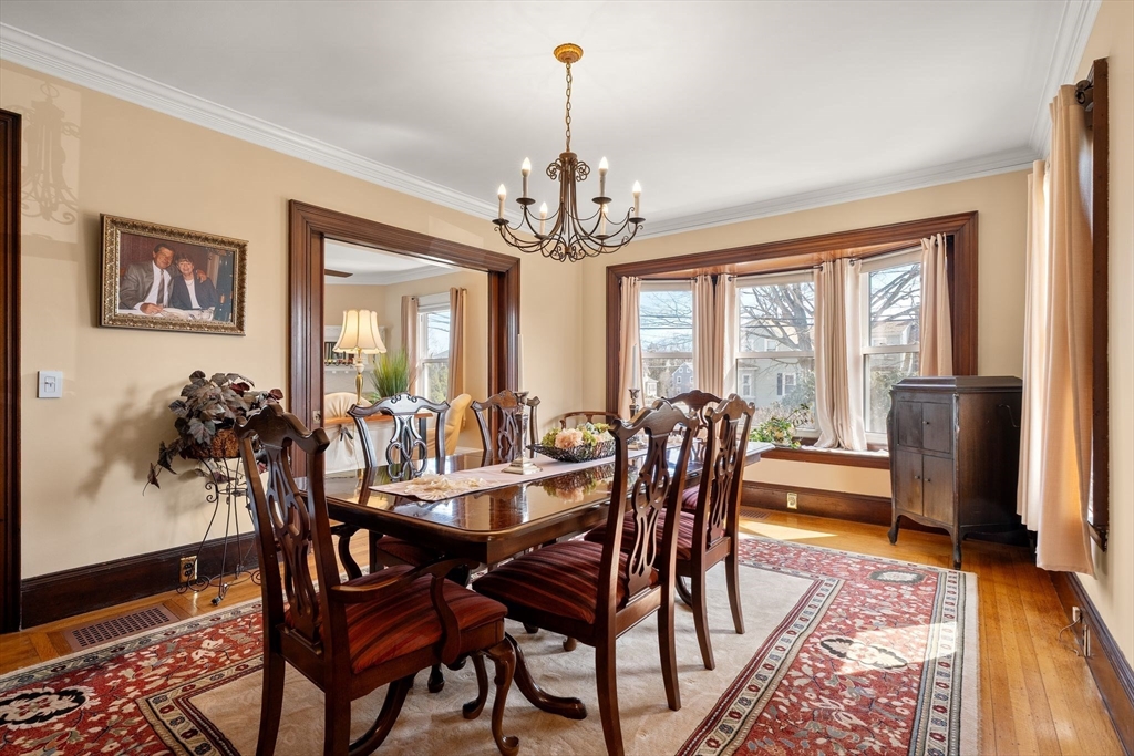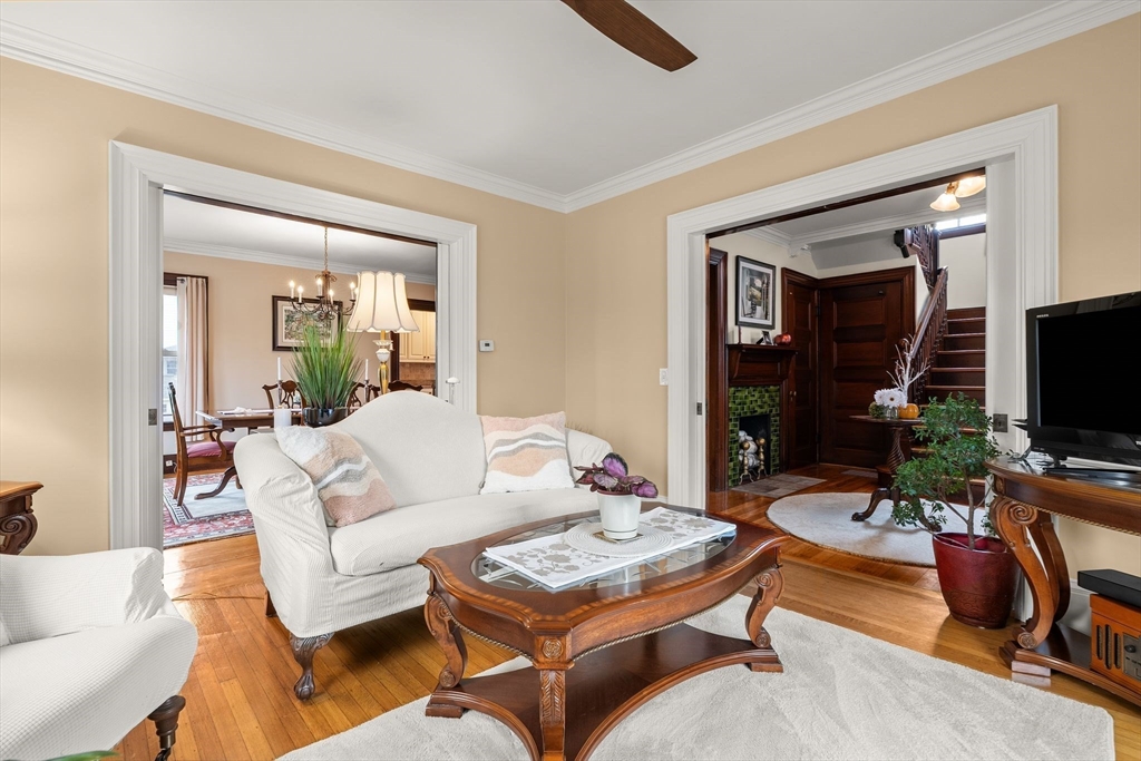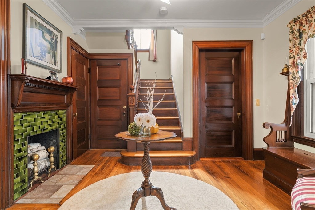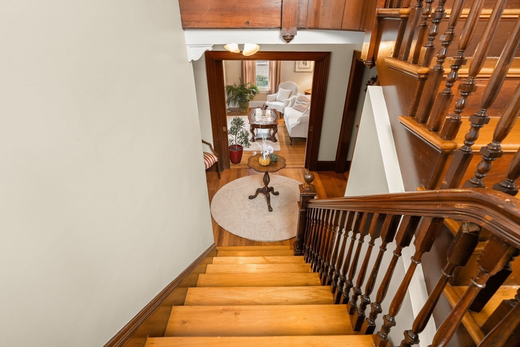 Impeccably maintained by just four owners, this timeless home seamlessly blends historic charm with modern comfort. The chef’s kitchen features a Wolf range, while the main living areas showcase rich woodwork, crown molding, and preserved architectural detail throughout. A gas fireplace and large picture window anchor the living room, with pocket doors connecting to the dining room and grand foyer—highlighted by elegant stair railings, intricate millwork, and a custom original bench. Upstairs offers four spacious bedrooms with ample closet space, including one with direct deck access, plus a full bath. The third floor provides two additional finished rooms ideal for expansion, while a full basement offers abundant storage. Set on over 1/3 acre with mature landscaping and a wraparound paver driveway, this Union Street landmark is steps to South Shore Hospital, Columbian Square, and Stetson-Tirrell Park, with easy access to Route 18, shopping, and dining.