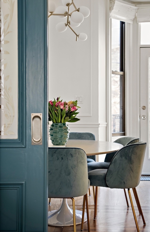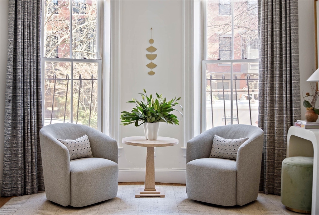 Classic South End brownstone living with beautiful light, soaring ceilings, and timeless architectural detail. Expansive bay windows fill the home with natural sunlight, highlighting elegant crown moldings, hardwood floors and marble fireplace. The open kitchen dining area create an inviting space for everyday living and entertaining, with direct access to a private rear deck perfect for a relaxing morning coffee or evening cocktail. Currently configured as a 2-bedroom, this home offers the flexibility of a 3-bedroom, 2.5 bath with generous storage throughout. Additional features include in-unit laundry, direct-access parking and a new heating/cooling system in 2022. Ideally located on a picturesque tree-lined street just steps from the South End's renowned restaurants, cafés, parks galleries and boutique shopping, offering the best of Boston's vibrant neighborhood lifestyle.
