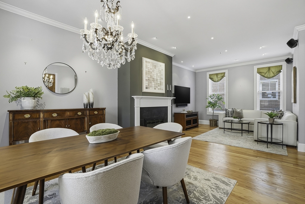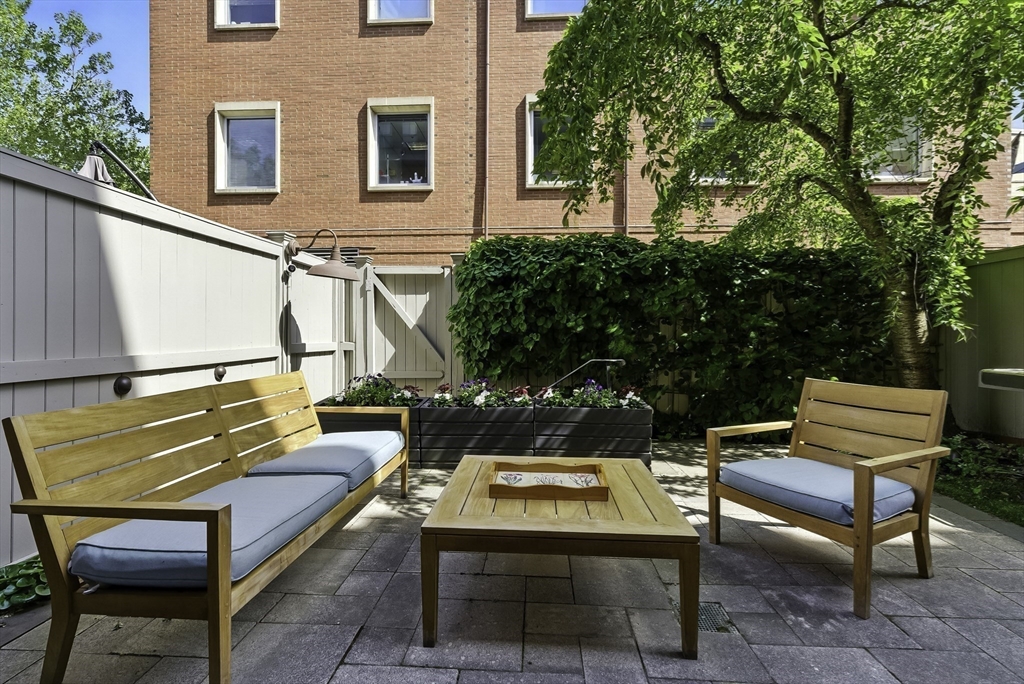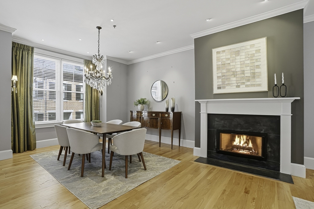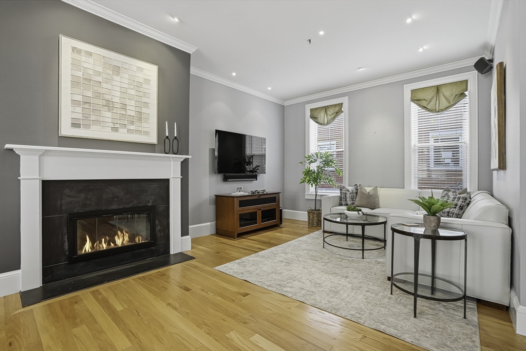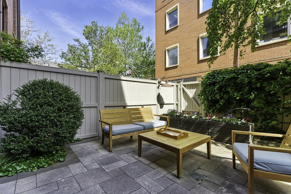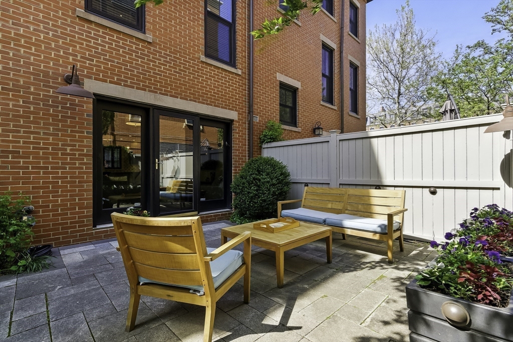 South End elegance on a serene, tree-lined street, where style, space & convenience converge. Enter through a welcoming foyer into over 2,300 SF of quiet luxury, with a double parlor featuring soaring ceilings, tall windows, oak floors & a gas fireplace, creating a striking centerpiece for the home. Expansive, sunlit rooms offer a versatile layout for refined living. Two deeded garage spaces—a highly coveted and uncommon offering—add convenience and value. The open-concept kitchen showcases custom cabinetry, Viking range, Sub-Zero refrigerator, radiant heat & marble countertops, flowing seamlessly to a fully fenced bluestone patio framed by gardens, a private outdoor sanctuary in the city. Third level offers two bedrooms & renovated guest bath. Top-floor primary suite features Back Bay skyline views, walk-in closet & spa-like bath with steam shower. Moments to Flour, Gigi, Toro, Kava —city living at its finest!