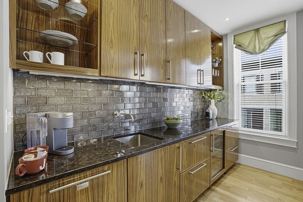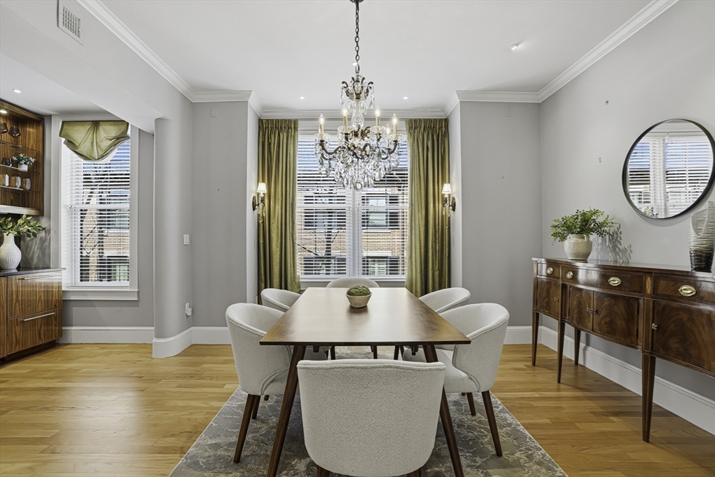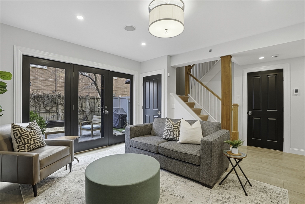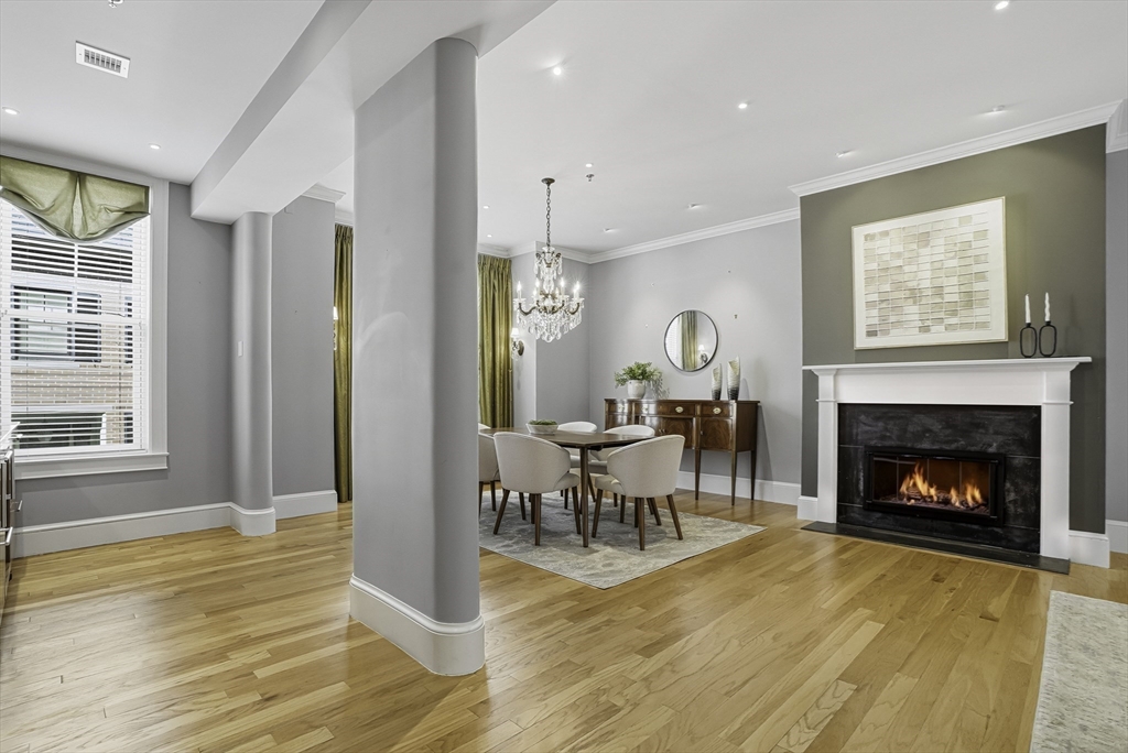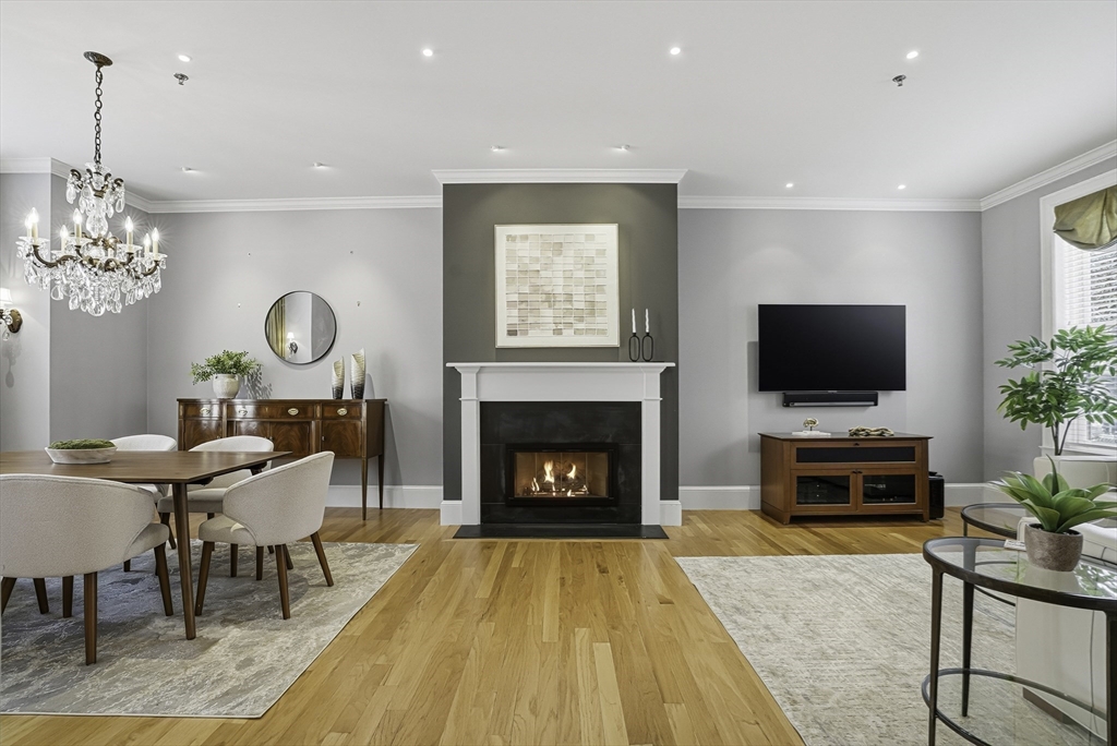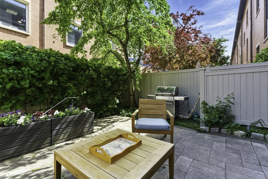 South End elegance on a serene, tree-lined street, where style, space & convenience converge. Enter through a welcoming foyer into over 2,300 SF of quiet luxury, with a double parlor featuring soaring ceilings, tall windows, oak floors & a gas fireplace, creating a striking centerpiece for the home. Expansive, sunlit rooms offer a versatile layout for refined living. Two deeded garage spaces—a highly coveted and uncommon offering—add convenience and value. The open-concept kitchen showcases custom cabinetry, Viking range, Sub-Zero refrigerator, radiant heat & marble countertops, flowing seamlessly to a fully fenced bluestone patio framed by gardens, a private outdoor sanctuary in the city. Third level offers two bedrooms & renovated guest bath. Top-floor primary suite features Back Bay skyline views, walk-in closet & spa-like bath with steam shower. Moments to Flour, Gigi, Toro, Kava —city living at its finest!