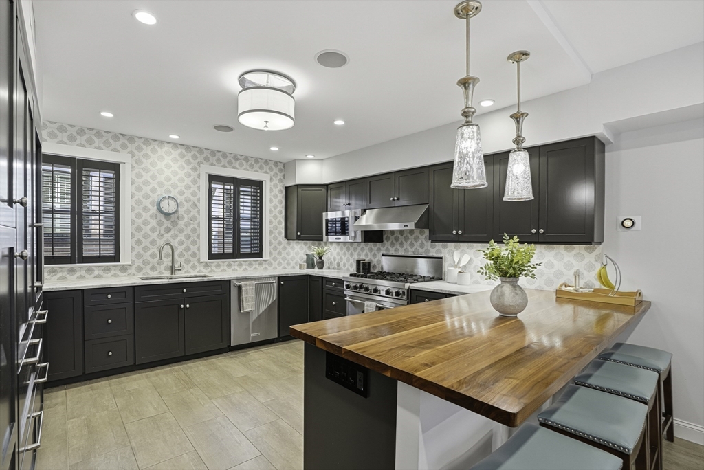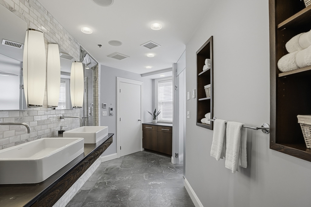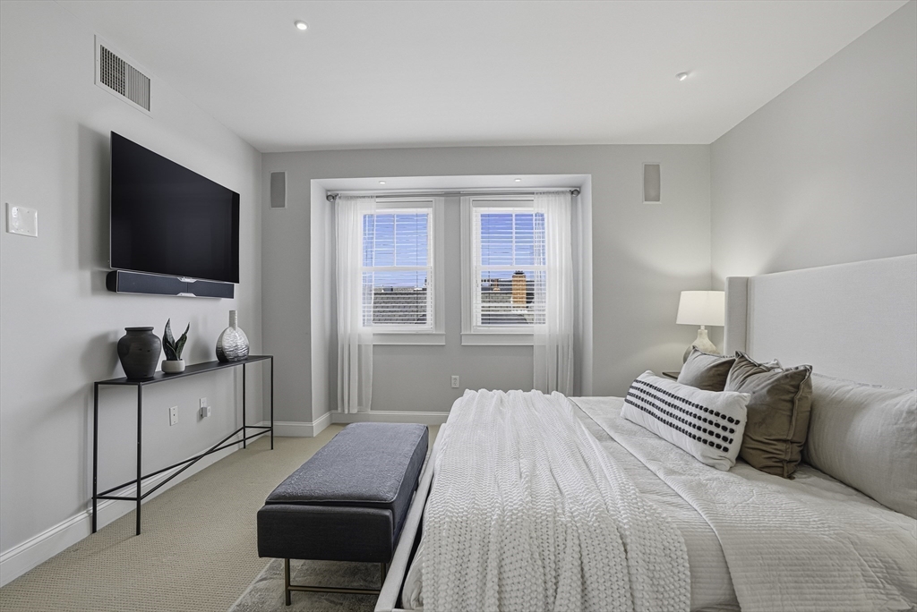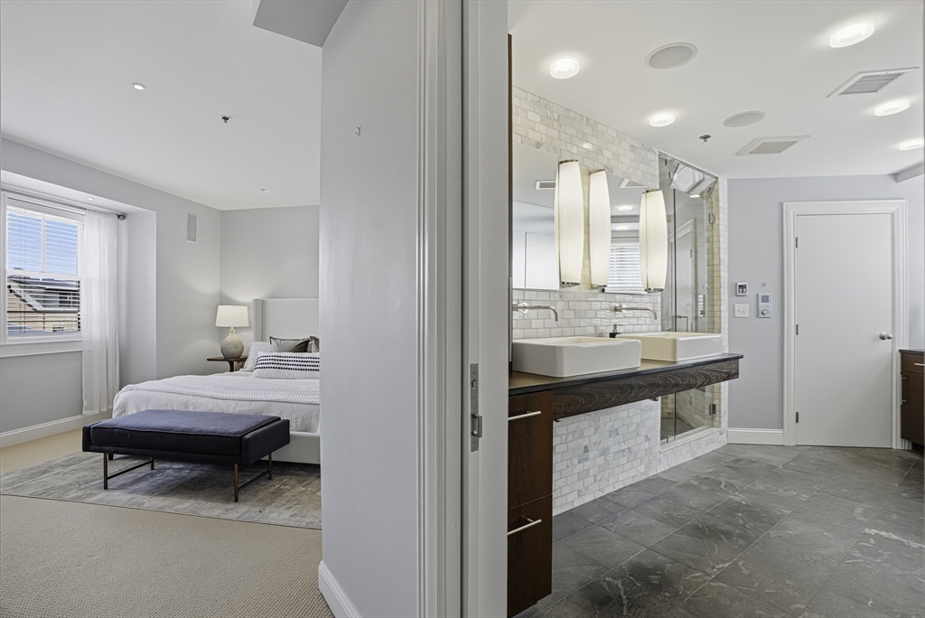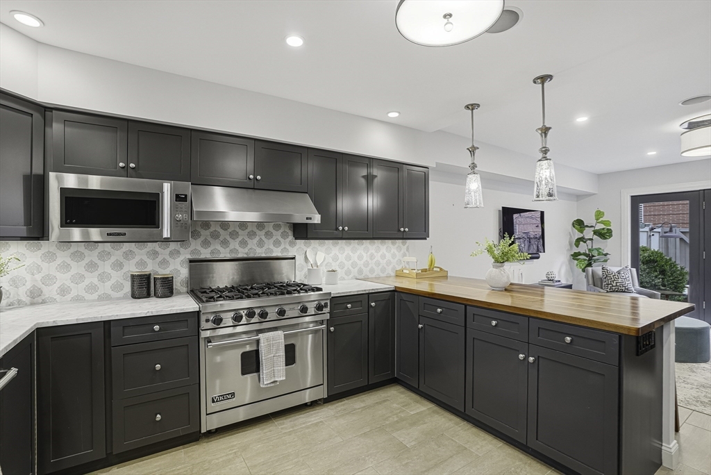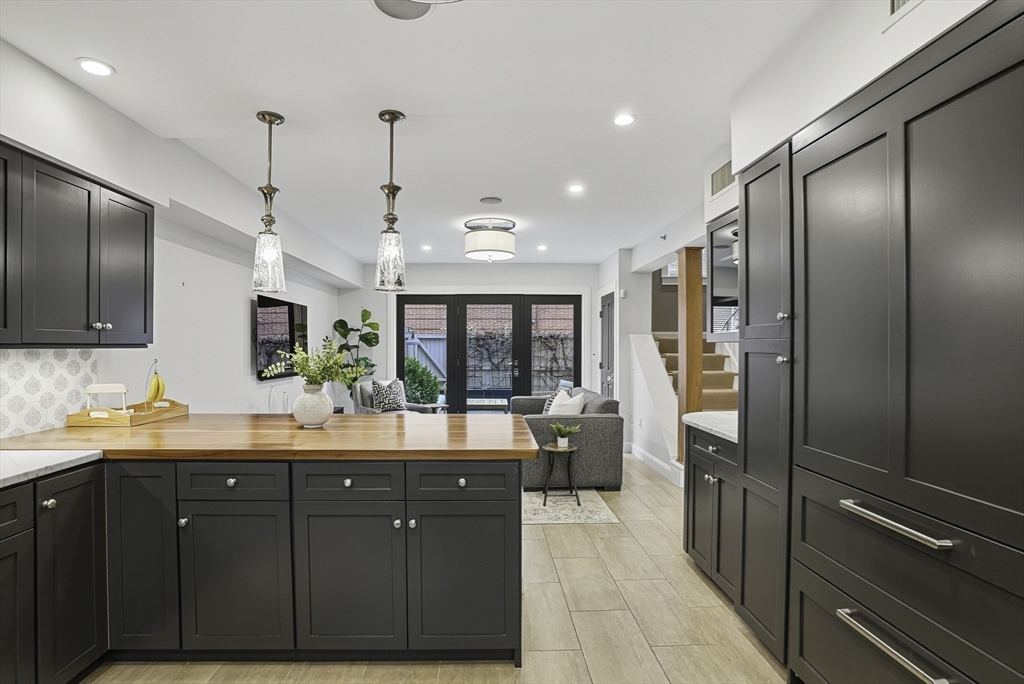 South End elegance on a serene, tree-lined street, where style, space & convenience converge. Enter through a welcoming foyer into over 2,300 SF of quiet luxury, with a double parlor featuring soaring ceilings, tall windows, oak floors & a gas fireplace, creating a striking centerpiece for the home. Expansive, sunlit rooms offer a versatile layout for refined living. Two deeded garage spaces—a highly coveted and uncommon offering—add convenience and value. The open-concept kitchen showcases custom cabinetry, Viking range, Sub-Zero refrigerator, radiant heat & marble countertops, flowing seamlessly to a fully fenced bluestone patio framed by gardens, a private outdoor sanctuary in the city. Third level offers two bedrooms & renovated guest bath. Top-floor primary suite features Back Bay skyline views, walk-in closet & spa-like bath with steam shower. Moments to Flour, Gigi, Toro, Kava —city living at its finest!