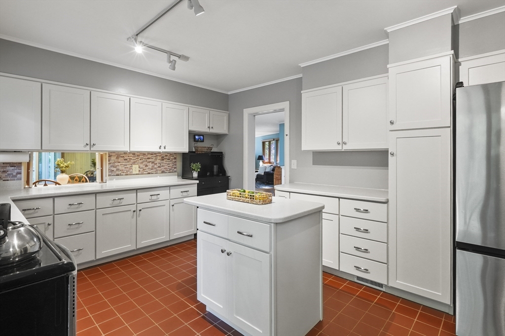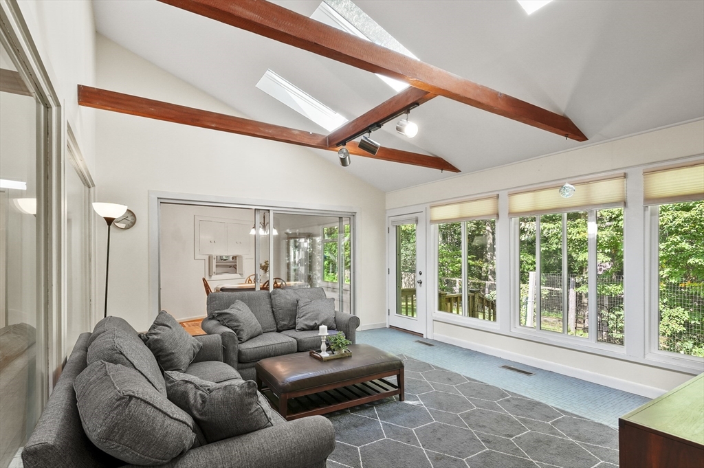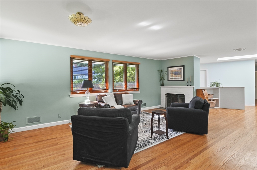 Tucked at the quiet end of a tree-lined street and surrounded by beautiful, mature trees, this expansive ranch offers a rare sense of privacy while being seconds from modern conveniences, schools, downtown, golf course & commuter rail. Set on a picturesque 1.5-acre lot, this 4 bed, 2 full bath home offers easy single-level living with expansion potential in the full basement. A timeless mid-century feel shines in the stunning family room with a wall of glass & skylights, filling the space with natural light and bringing the outdoors in. The kitchen overlooks the private backyard and opens to a cozy living room with fireplace & a separate dining room for everyday living & entertaining. The primary suite includes a renovated bath, while 3 additional bedrooms with hardwood floors complete the main level. A two-car garage with workshop/storage area and a practical mudroom add convenience, plus a lovely stone/paver walkway and a setting to enjoy nature every season. Truly a special setting.