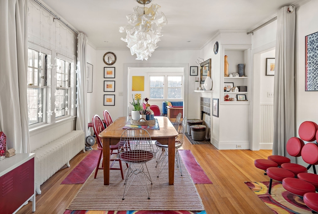 Located on a scenic street in one of Arlington’s most desirable neighborhoods, this classic 1909 home blends timeless New England charm with a warm, inviting layout for modern living. Architectural details, hardwood floors, and sunlit interiors create an elegant yet comfortable feel. The main level offers spacious living and dining areas, a well-appointed kitchen, cozy den, powder room, and mudroom with built-in storage. A bright sun porch extends the living space year-round. Upstairs are three bedrooms, including a generous primary with two walk-in closets, and a beautifully finished bath. The lower level features a large family room, full bath, and built-in shelving, plus unfinished space for storage or workshop. Set on a 0.19-acre lot with stone patio, custom fencing with red glass insets, and two-car garage. Close to Arlington Center, Minuteman Bikeway, parks, and dining, with easy access to Cambridge and Boston.