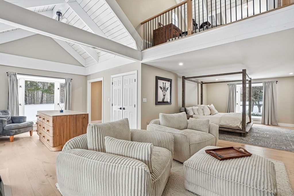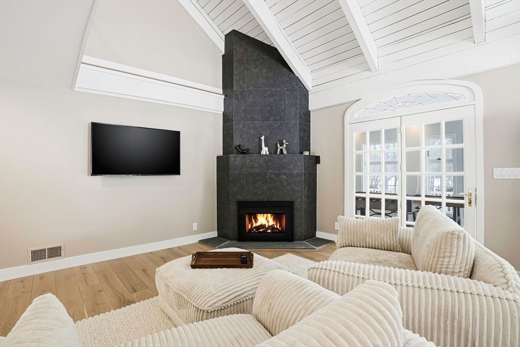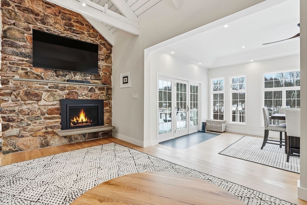 Set on 9.5 private acres and located across from the Norfolk Hunt Club with access to equestrian trails, this fully renovated/energy-efficient property offers space, craftsmanship, and resort style amenities. The main level features a chef’s kitchen with granite counters, waterfall island, custom cabinetry, high-end appliances, stone fireplace & tongue-groove ceiling with exposed beams. New hardwood floors throughout. The dining and sitting rooms showcase bay windows and floor-to-ceiling views. The expansive first floor primary suite includes a gas fireplace, spa-like bath with soaking tub & steam shower, custom walk-in closet, and direct sunroom access. Three additional bedrooms, 2 versatile loft-style spaces and a finished lower level with recreation and fitness rooms provide flexibility for a variety of living arrangements. Outside, enjoy an in-ground pool, pool house, gazebo, stream-fed pond, barn with 2 horse stalls, four generously sized garage bays and stone walls throughout.