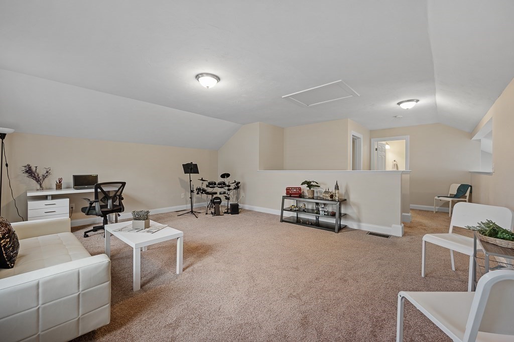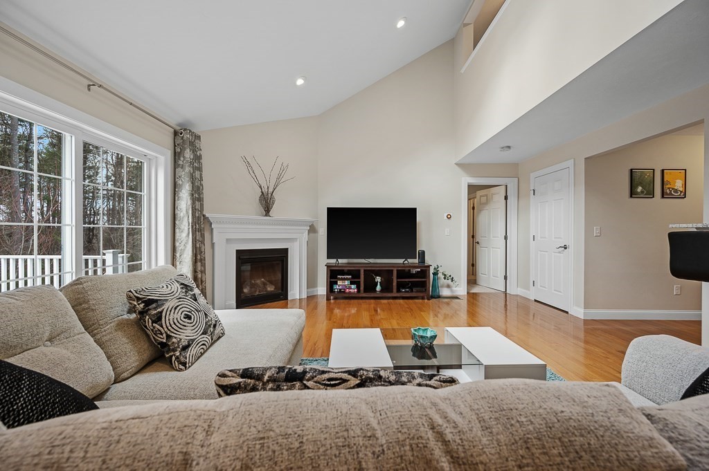 Welcome to this bright, beautiful condo featuring a large living room with vaulted ceilings, hardwood floors, and a gas fireplace. A glass door leads out to a composite deck that overlooks the backyard, perfect for outdoor relaxing. The kitchen offers a breakfast bar open to the dining area, upgraded cabinets, granite countertops, stainless appliances, and a high-capacity hood with external ducting. The large primary bedroom features cozy carpet flooring, a walk-in closet, and a private bath with a glass shower door. The guest bathroom and laundry room are also conveniently located on the main level. Upon entering the second floor, you'll find a spacious loft that provides flexible space for a home office, gym, or additional living area. The second floor also includes an additional bathroom with a tub and shower. Extra highlights include a home water filtration system, central air, a two-car garage, and a basement with great potential. Residents enjoy a clubhouse for entertaining.