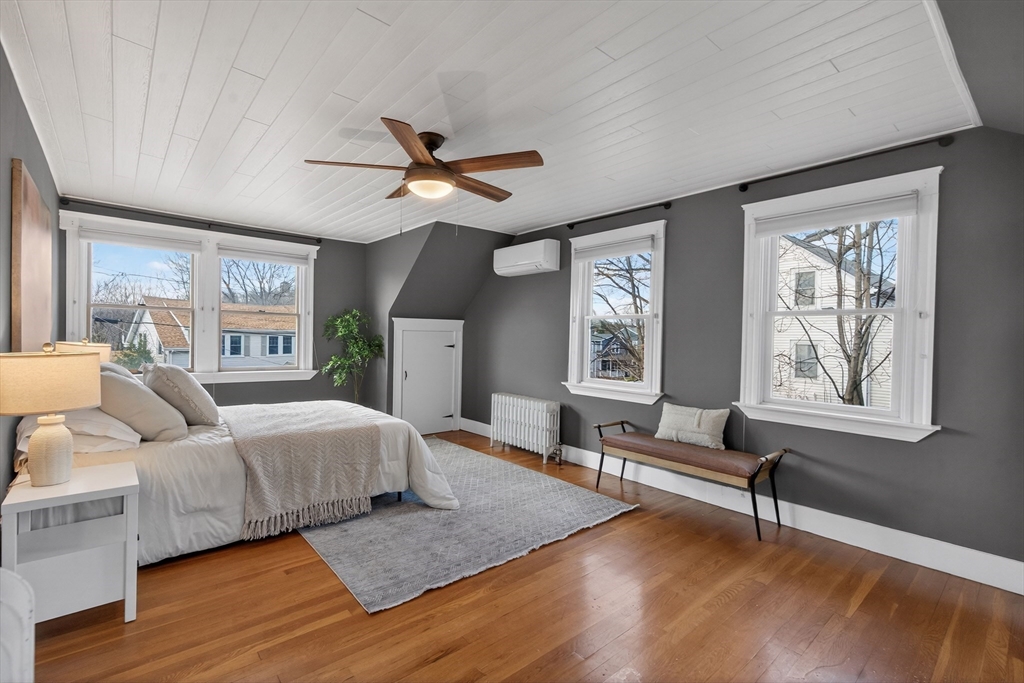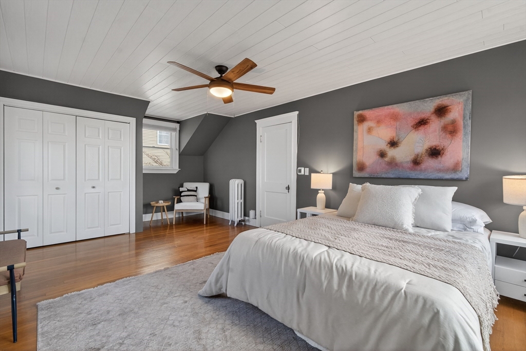 Wake up in a home powered by a beautiful Tesla Solar Tile Roof and Powerwall battery, offering quiet, reliable energy, noticeably lower monthly bills, and a sleek, modern aesthetic without the bulky look of traditional solar panels. Evenings flow easily from the spacious living room to a cozy screened porch, where you can sip your coffee, or host friends in the fresh air. The fenced yard with slate patio feels like a private retreat, perfect for summer dinners, gardening, pets, and play. Just beyond your doorstep, the Middlesex Fells Reservation opens up over 2,200 acres of trails, sparkling views at Spot Pond, and sweeping vistas from Wright’s Tower - an everyday escape that feels miles from the city. On warm days, stroll to resident-only Wright’s Pond beach, then reach downtown Boston in minutes via Wellington Station on the MBTA Orange Line, with quick access to I-93 and Route 28. Here, sustainable living, everyday comfort, and a rare connection to nature come together.
