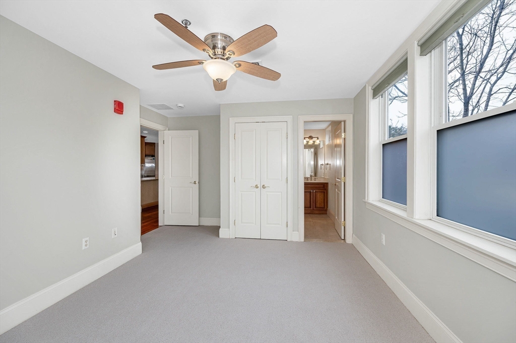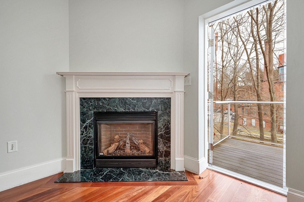 Welcome to the rarely available Spillway Condominiums! This gorgeous corner unit offers tranquil views overlooking the Assabet River and a bright, open layout with gleaming hardwood floors. The spacious living & dining area features a cozy fireplace & access to a private deck to enjoy the relaxing sounds of the river. The updated kitchen boasts granite countertops & peninsula seating. The primary bedroom includes an ensuite bath with a double vanity, while the second bedroom offers a large walk-in closet & direct access to a full bath. Additional highlights include in-unit laundry, an elevator building, & TWO GARAGE parking spaces. Ideally situated with easy access to restaurants, shopping, & transportation. Pet friendly building!
