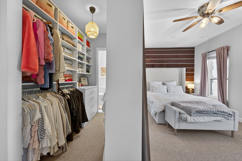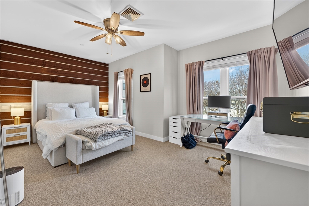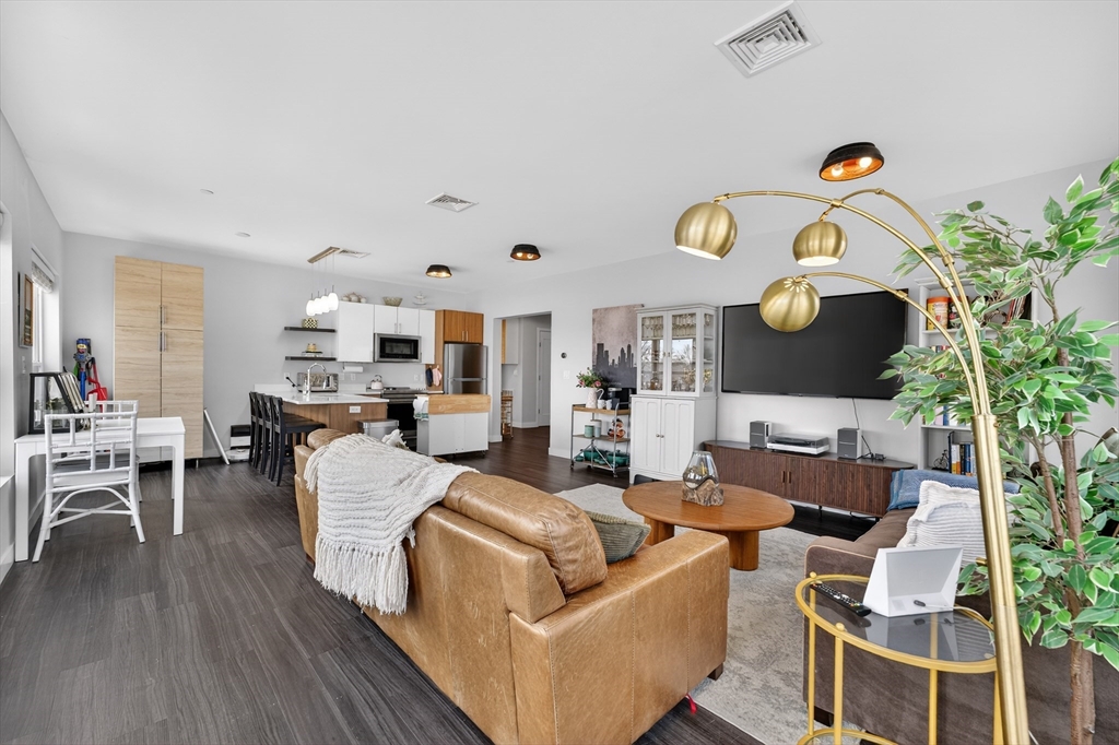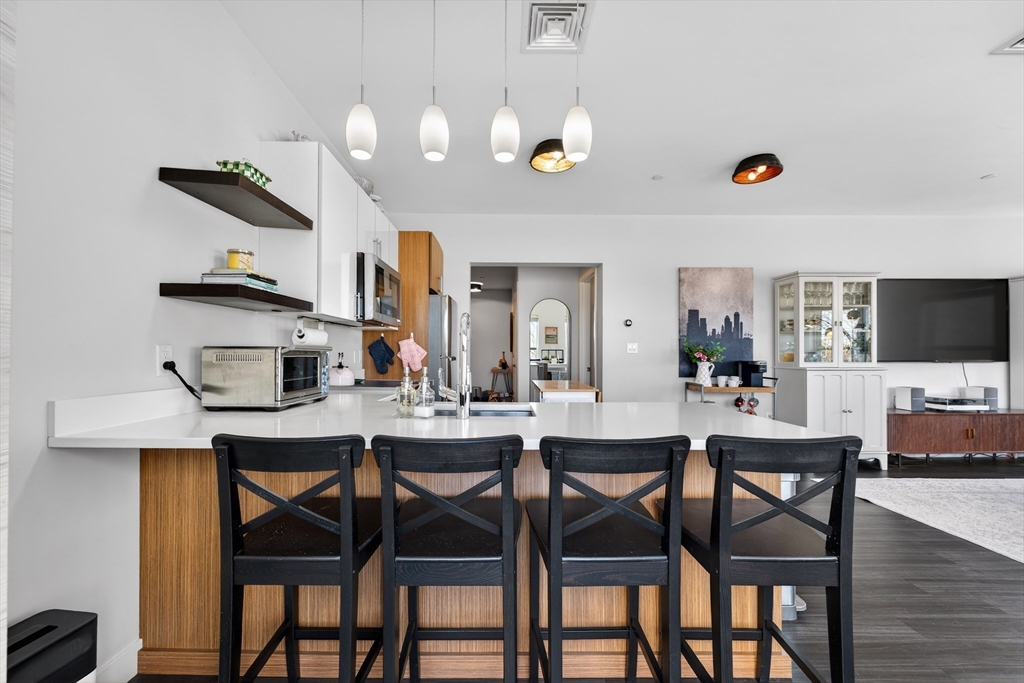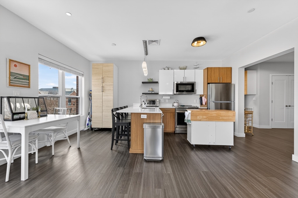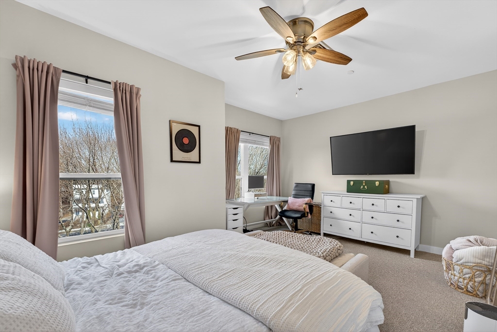 Welcome to the Residences at Brookside. A luxury Condominium building ideally situated steps from Quincy Center. This sun-filled two-bedroom two-bathroom corner unit has amazing natural light with two exterior walls of windows overlooking Furnace Brook. This modern layout offers a great entertaining space with dark-stained engineered oak floors, stainless steel appliances and stone counters. Spacious master suite with custom designed walk-in closet and finely appointed bath. Building amenities include a full gym, yoga studio, club room, common courtyard with grilling area and an expansive roof deck with city and ocean views. This Residence comes with two-deeded garage parking spaces!