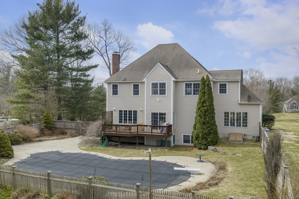 Rare offering in one of Norton’s most sought-after neighborhoods! This stunning, custom built Colonial sits on a beautifully private 1 acre lot. Step into a grand, light-filled foyer with soaring cathedral ceilings and gleaming hardwood floors, seamlessly opening to the main living areas, private office, and a thoughtfully designed kitchen that flows into the inviting family room with a warm wood-burning fireplace. Boasting over 3,900 sq ft with 4 bds, 2.5 baths, spacious primary suite (w/ jacuzzi tub & walk in closet). The finished lower level, enhanced with an Owens Corning® finish, offers room to grow. Beautifully landscaped yard blooms in the spring and summer months features a resort-style inground pool ideal for hosting and making memories with the family. Homes in this neighborhood rarely hit the market—an exceptional opportunity for buyers.Tucked away yet conveniently located - A rare combination of size, setting, and location!