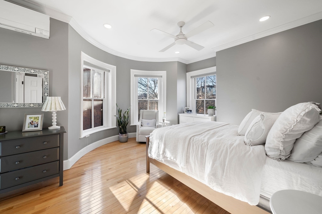 This sun-filled top corner brownstone gets incredible light from the south and west and is nestled on Columbus Ave, just blocks from Bay Bay. The kitchen has been thoughtfully designed with quartz countertops, a breakfast bar, tile backsplash, pendant lighting, and a farmhouse sink, plus plenty of storage! The open layout offers generous space for entertaining, with room for dining on either end. The expanded bathroom features double vanities, ample counter space, and a large glass walk-in shower. The bedroom is bright and spacious, with four oversized windows overlooking Rutland Square. One of the standout features is the massive walk-in closet, complete with custom shelving and well-organized storage. To top it all off, there’s a private treetop terrace off the primary, perfect for unwinding after a long day.