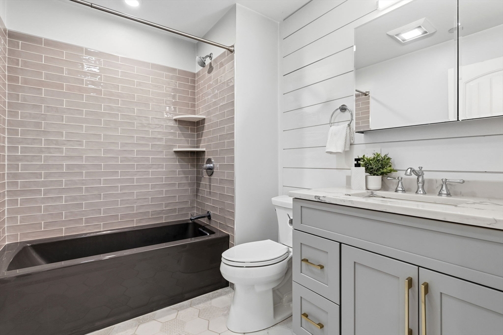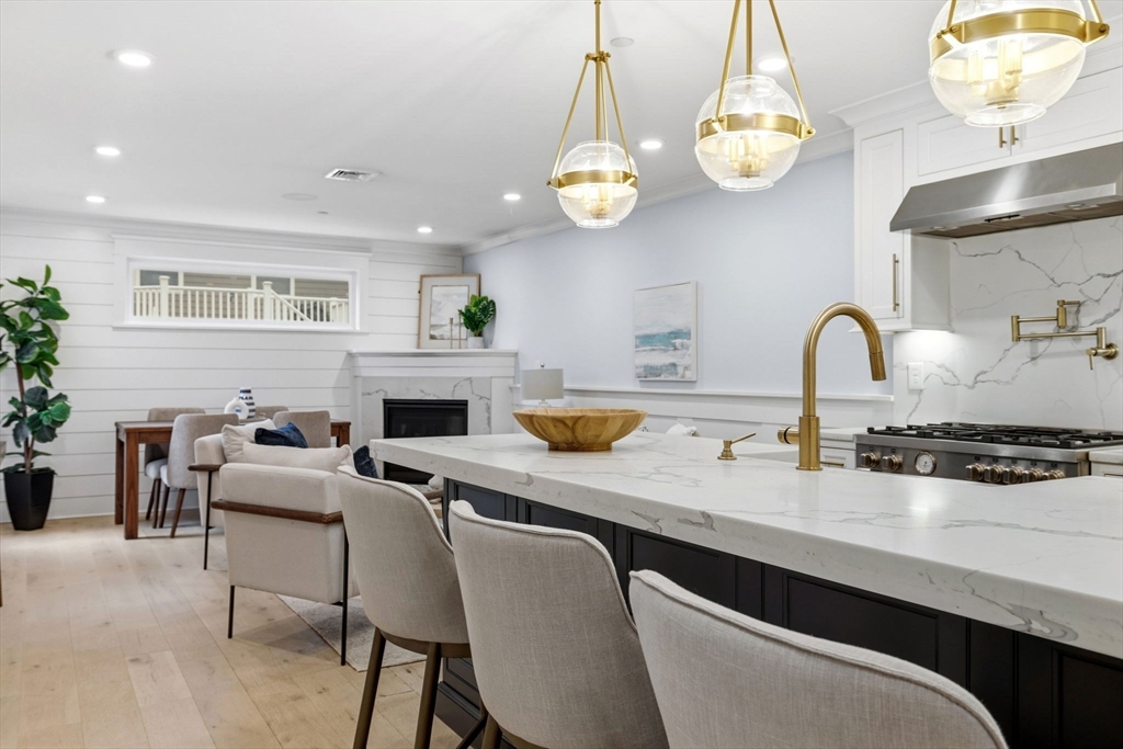 This lovely constructed 2-bedroom / 2-bathroom unit can be found in a prime South Boston location. The open layout features a stunning kitchen with a Bertazzoni stove, custom white cabinetry and contrasting navy island, paneled appliances, lavish quartz countertops and pendant lighting. The kitchen flows into the living and dining area complemented by an exquisite gas fireplace, shiplap accent wall and beautiful wall moldings. The primary suite accommodates a king-sized bed and has a custom closet in addition to the bathroom outfitted with a frameless glass shower and Hans Grohe fixtures. The bright 2nd bedroom is an excellent size and also features a custom closet. Other features include, wide-plank oak floors, in-unit laundry, Nest thermostat and central air conditioning. Located within a boutique elevator building, you'll have easy highway access, walkable to the Red Line, Seaport and other outstanding restaurants and shops. This unit also comes with private storage in the building.