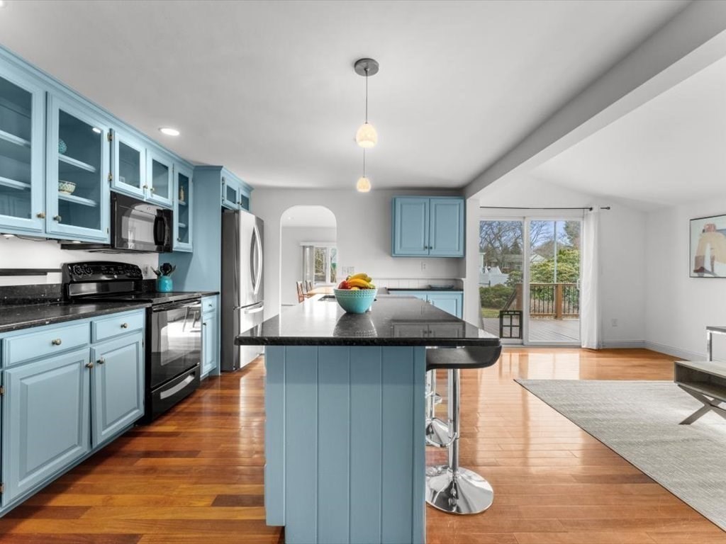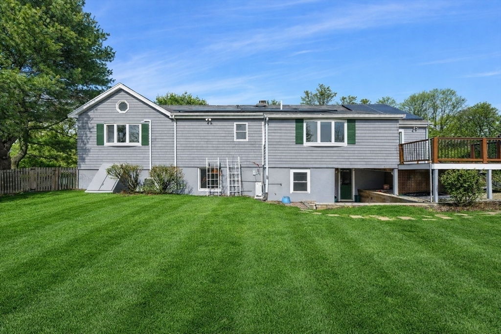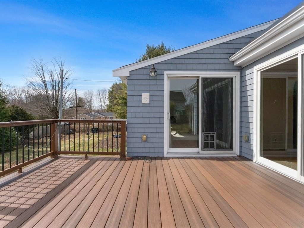 This welcoming ranch offers the comfort of main-level living paired with the space and flexibility today’s buyers need. Sunlight fills the fireplaced living room, while the updated kitchen with island flows seamlessly into the family room, highlighted by a large window overlooking the backyard. The dining room opens to a deck—perfect for morning coffee or relaxed evenings outdoors. The main level includes two bedrooms and two full baths, offering comfort and convenience. Downstairs, you’ll find additional living space with a third bedroom, full bath, laundry, and playroom—ideal for guests, work, or recreation. Set on a generous corner lot, the home features a two-car garage and walkup unfinished space about garage, offering exciting potential for future expansion. Conveniently located with easy access to Route 128/95 and the commuter rail, this home is ideal with 1st floor primary, easy commute & expansion potential above garage and lower level