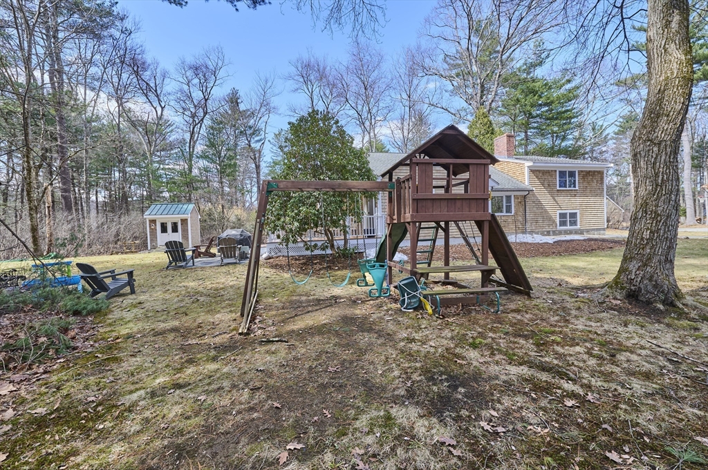 Set on a picturesque one-acre corner lot, this beautifully updated contemporary offers 4 bedrooms, 2.5 baths, and versatile living space. An open, light-filled layout features an updated eat-in kitchen, and a striking bluestone fireplace. Generous living and family rooms provide flexibility for everyday living and entertaining, while thoughtful updates blend seamlessly with classic charm. The upper level features a spacious primary suite with a private full bath, along with three additional bedrooms offering comfort and privacy, plus a second full bathroom. Outside, mature landscaping creates a serene setting, complemented by two sheds—one finished—ideal for a home office, studio, or extra storage. Convenient to Wellesley and Needham centers, commuter rail, and top-rated schools.