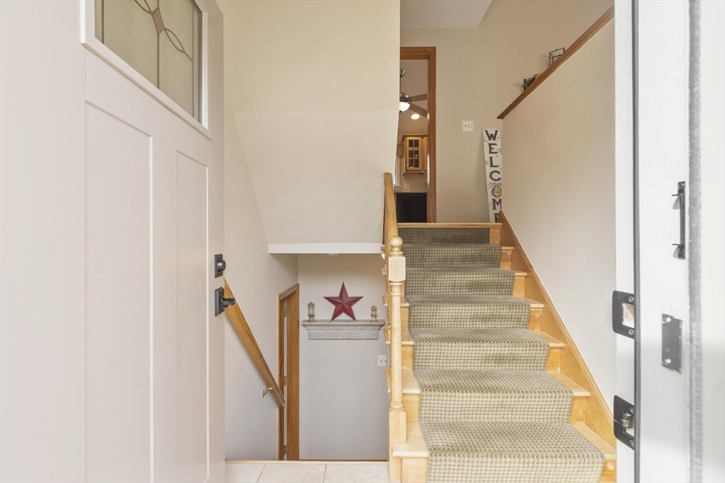 Well-maintained raised ranch offering comfortable living with a bright, welcoming layout. The main level features a sun-filled living room with hardwood flooring and an open kitchen and dining area, also with hardwood floors. The kitchen is appointed with Corian countertops and the dining area provides direct access to a deck overlooking the backyard—an ideal spot to relax or entertain while enjoying the natural light that fills the space. This home offers three bedrooms and two bathrooms, along with a partially finished walk-out lower level that provides additional flexibility. The lower level includes a spacious family room with a fireplace, an exercise room, laundry area, and a bath, with convenient access to the yard. Lovingly cared for over the years, this home presents a wonderful opportunity for its next owners.