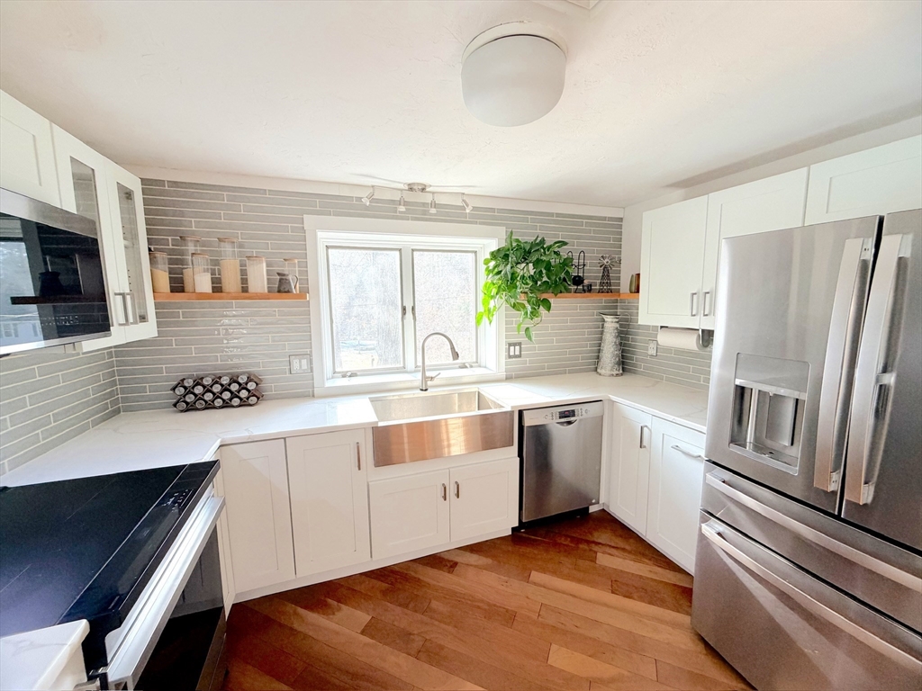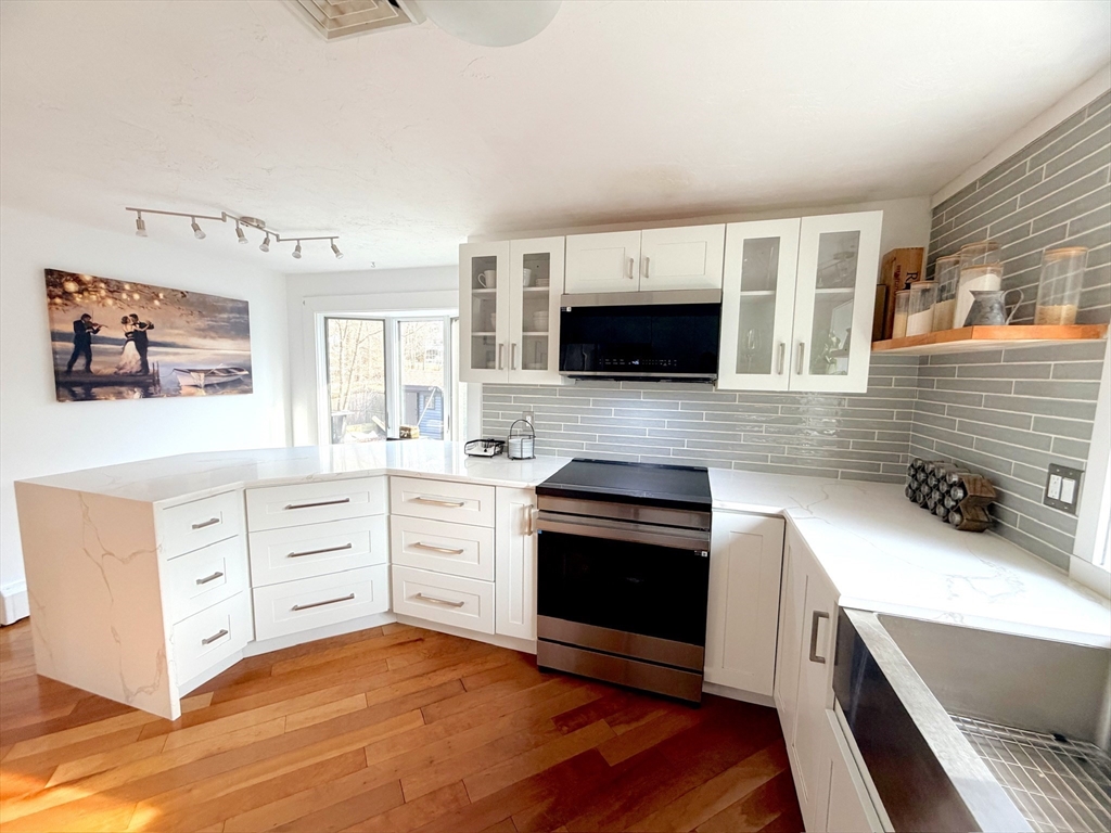 Charming 3 bedroom contemporary on Norfolk/Medfield line. Fresh exterior paint + new accent siding, expansive fenced-in backyard and gorgeous 16x32 in-ground pool w/ new filter make summers at home feel like vacation! Main level boasts updated custom kitchen w/ stunning quartz countertops and waterfall peninsula, stainless steel appliances + custom pantry + dry bar. Dedicated dining room. Completely renovated half bath w/ chic modern features. Inviting sitting room w/ fireplace overlooking oversized deck + pool area. Vaulted ceilings, skylight + Anderson casement windows create stunning main living room. Screened-in porch overlooking yard. Upstairs 2 generously-sized bedrooms, updated full bath + oversized master bedroom with vaulted ceilings + en suite. Partially finished basement provides bonus room / flex space perfect for a playroom, gym or office. Many recent upgrades incl. well pump, water filtration + softener system, central air unit + more. OFFERS DUE BY 5PM TUESDAY 3/31