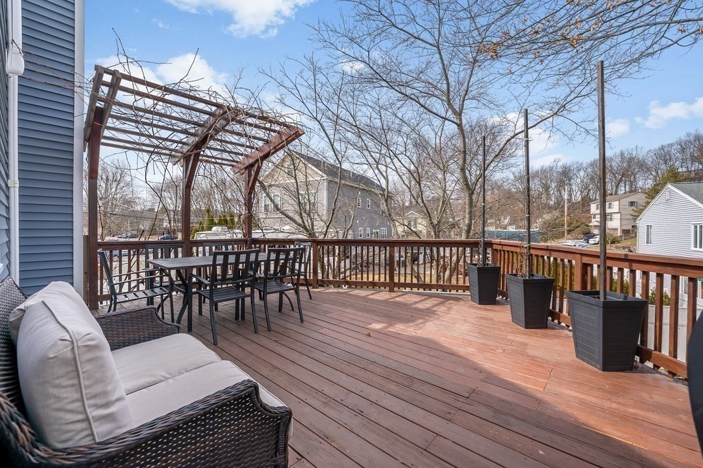 Welcome to 350 Water Street, a beautifully updated, move-in ready home that blends modern comfort with timeless appeal. This young residence features a highly functional layout with 4 spacious bedrooms and 2 fully renovated bathrooms. The updated kitchen flows seamlessly into bright living and dining areas enhanced by vaulted ceiling and abundant natural light. Recent updates such as new siding and water heater offer peace of mind for years to come. The finished lower level provides an IN-LAW SUITE, ideal for extended family, guests, or a home office. A large mudroom adds everyday functionality, while the oversized garage offers ample storage. Outside, enjoy a private retreat with an expansive deck and stunning pergola overlooking a professionally landscaped, fully fenced backyard—perfect for entertaining or relaxing. Complete with central air conditioning and turnkey condition throughout, this home is a rare opportunity to buy your dream home in Wakefield.