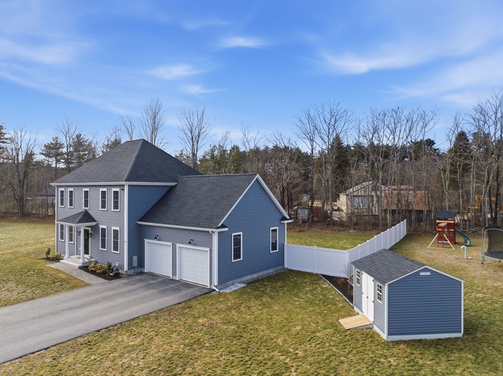 Welcome to 9 Wilson Road, Berlin, MA! This beautifully maintained Col (built in 2022) offers 3-bedrm & 2.5-bath, ideally situated at the end of the cul-de-sac, & just mins from Berlin Memorial School! Step inside to discover a thoughtfully designed interior featuring HW flooring, custom detailing, a charming boxed window, & elegant granite counters. The open-concept kitchen is complete with a large island, a gas stove, SS appliances, & ample workspace. The adjoining eat-in area provides direct access to the backyard & patio. The inviting FR has a cozy gas FP, creating a perfect space to unwind. Upstairs, the primary bedrm boasts two large w/in closets, a tiled shower, & double vanity. There is a 2-car garage wired for an electric vehicle (240V), dual heating & air conditioning systems, efficient gas heat/cooking, an economical tankless water heater, a 12x10 shed, & conveniently located near Rt 495/290, Highland Commons, Wegman's, & NE Sports Center! Your dream awaits you!