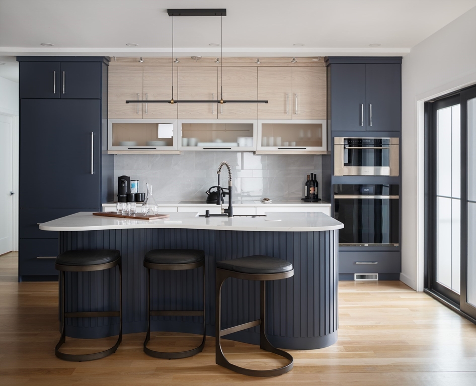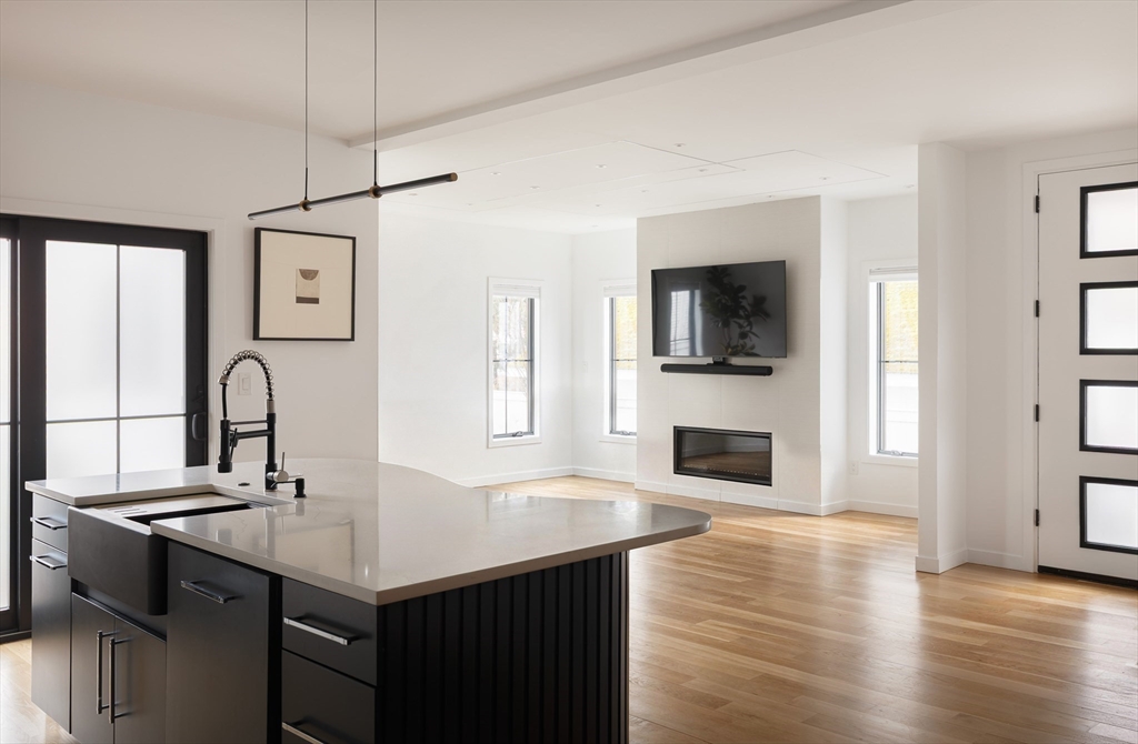 Inspired by the architecture and lifestyle of Boston’s Seaport, this 2025-built modern townhome in the heart of Needham Center offers 4 bedrooms, 3 full bathrooms, and approximately 3,000 square feet of thoughtfully designed living space. Clean architectural lines and a striking floating staircase define the home. An open floor plan creates a seamless connection between the living area and kitchen, highlighted by top-of-the-line cabinetry with a curved island, reeded detailing, and Sub-Zero and Wolf appliances. The first floor includes a bedroom or office and a full bath. Upstairs, a luxurious primary suite features a walk-in closet and a meticulously designed spa-like bath, while two generously sized bedrooms share a full bath. A 1-car garage and private backyard offer a rare balance of design, function, and outdoor space. Just moments to shops, dining, and commuter rail in Needham Center.