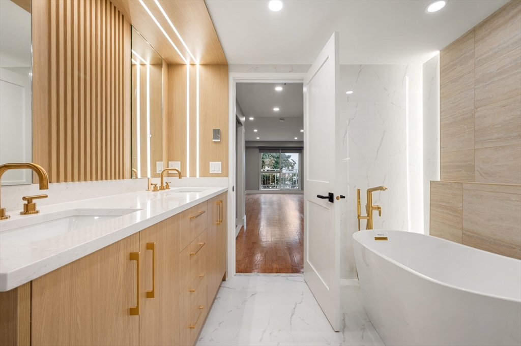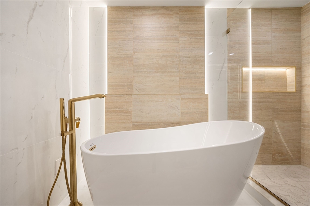 This perfectly renovated two bedroom, two bathroom unit at the Esplanade has River views from every room. Well thought out floor plan includes open kitchen,dining/living room perfect for entertaining.Enjoy beautifully landscaped Front Park and the serenity of the Charles River. Custom modern Kitchen cabinetry, Porcelain Quartz countertops, new stainless steel appliances & heated floors.Laundry room includes full washer/dryer with storage.The generous primary suite has two double closets and spa like bathroom which includes soaking tub, walk in shower, heated towel rack, double sinks and an abundance of storage. Sip your morning coffee or enjoy a nice glass of wine from the deck off of the primary suite.The second bedroom can also be used as den or in home office. Second full bath has walk in shower & quartz countertop. All new recessed lighting throughout. 24 hour concierge, indoor heated lap pool , sauna, showers and fitness center.Two heated parking spaces close to building entry.