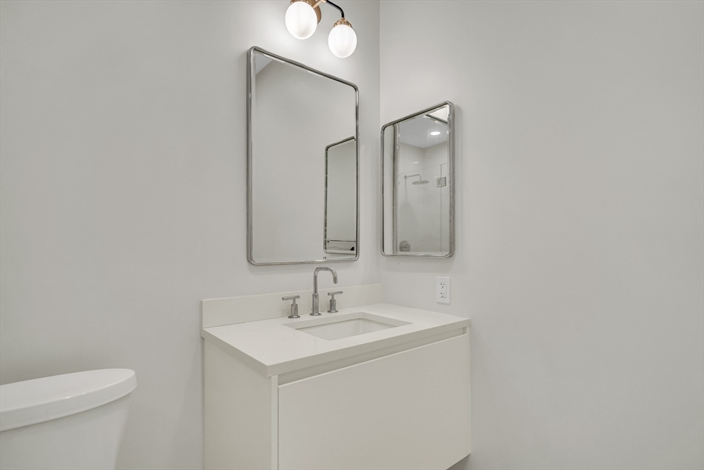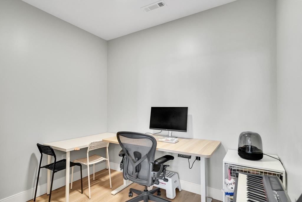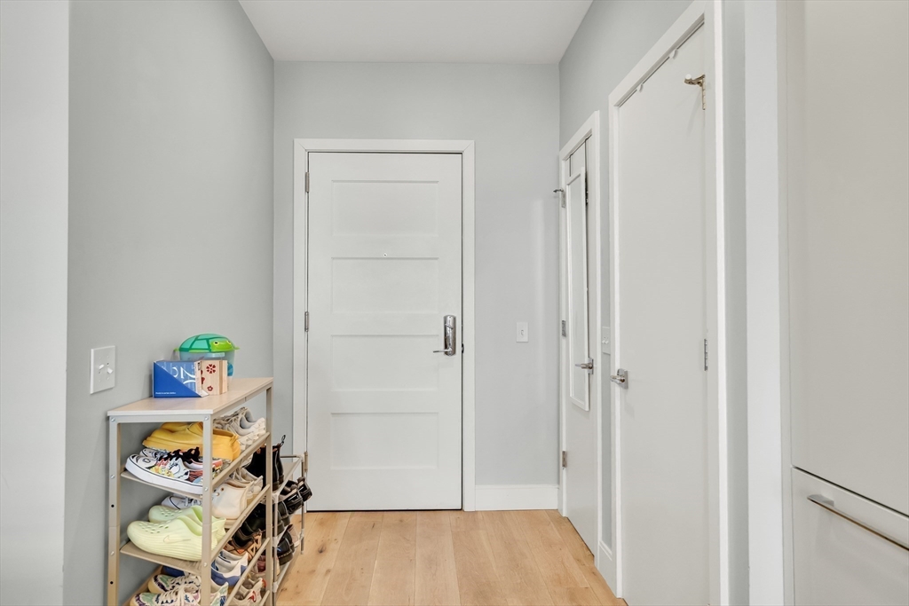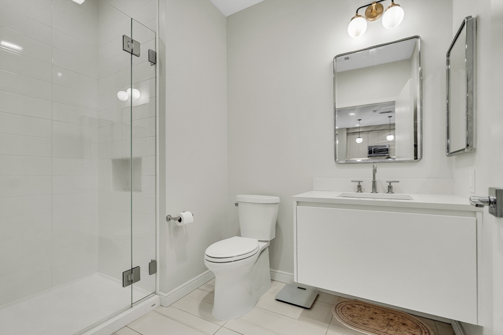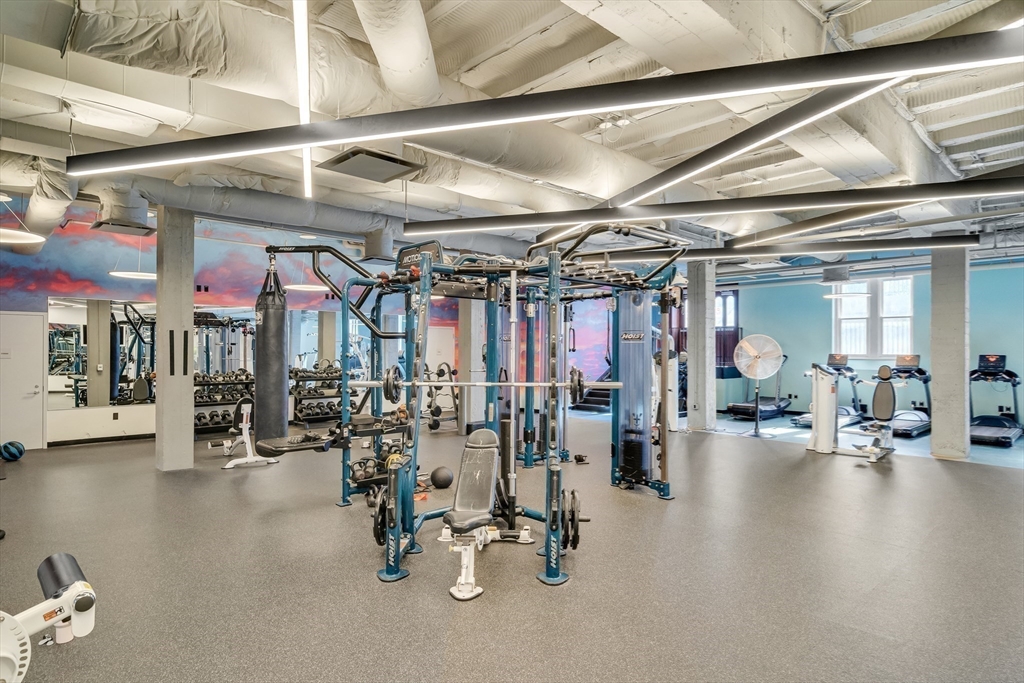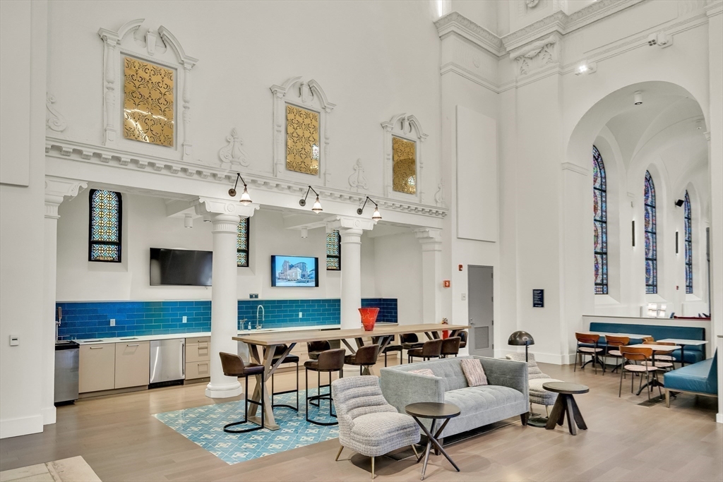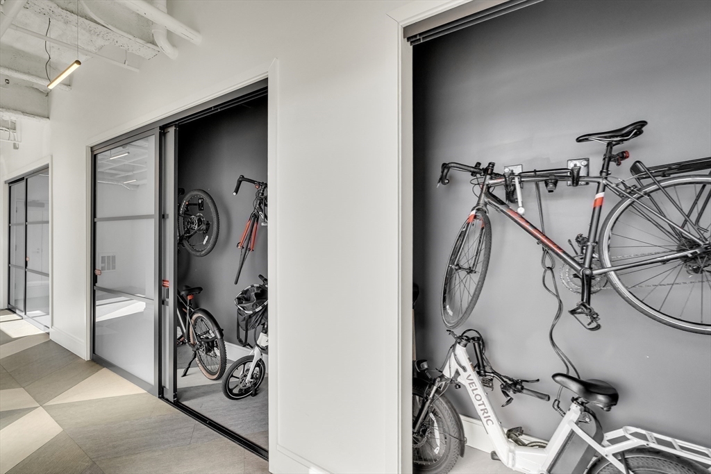 Sophisticated one-bedroom residence with bonus room ideal for a home office, den, or guest space at Stratus, a luxury condominium completed in 2022, including one garage parking space. Floor-to-ceiling windows bring natural light into the home and highlight the open living layout. Kitchen with spacious island, white cabinetry, and Bosch appliances including paneled refrigerator and dishwasher, stainless steel range and microwave. Bedroom with walk-in closet. Wood flooring, central heat and AC, and in-unit laundry. Modern bath with large walk-in shower. Stratus amenities include concierge desk, library lounge, work areas, fitness center, sauna, landscaped terrace with grilling stations and fire pits, and a sky lounge with roof deck and grills. Additional amenities, including a pool and expanded fitness facilities, are available next door at The Overlook at St. Gabriel’s for a minimal fee. Convenient location near Whole Foods, shops, restaurants, and the Green Line MBTA.